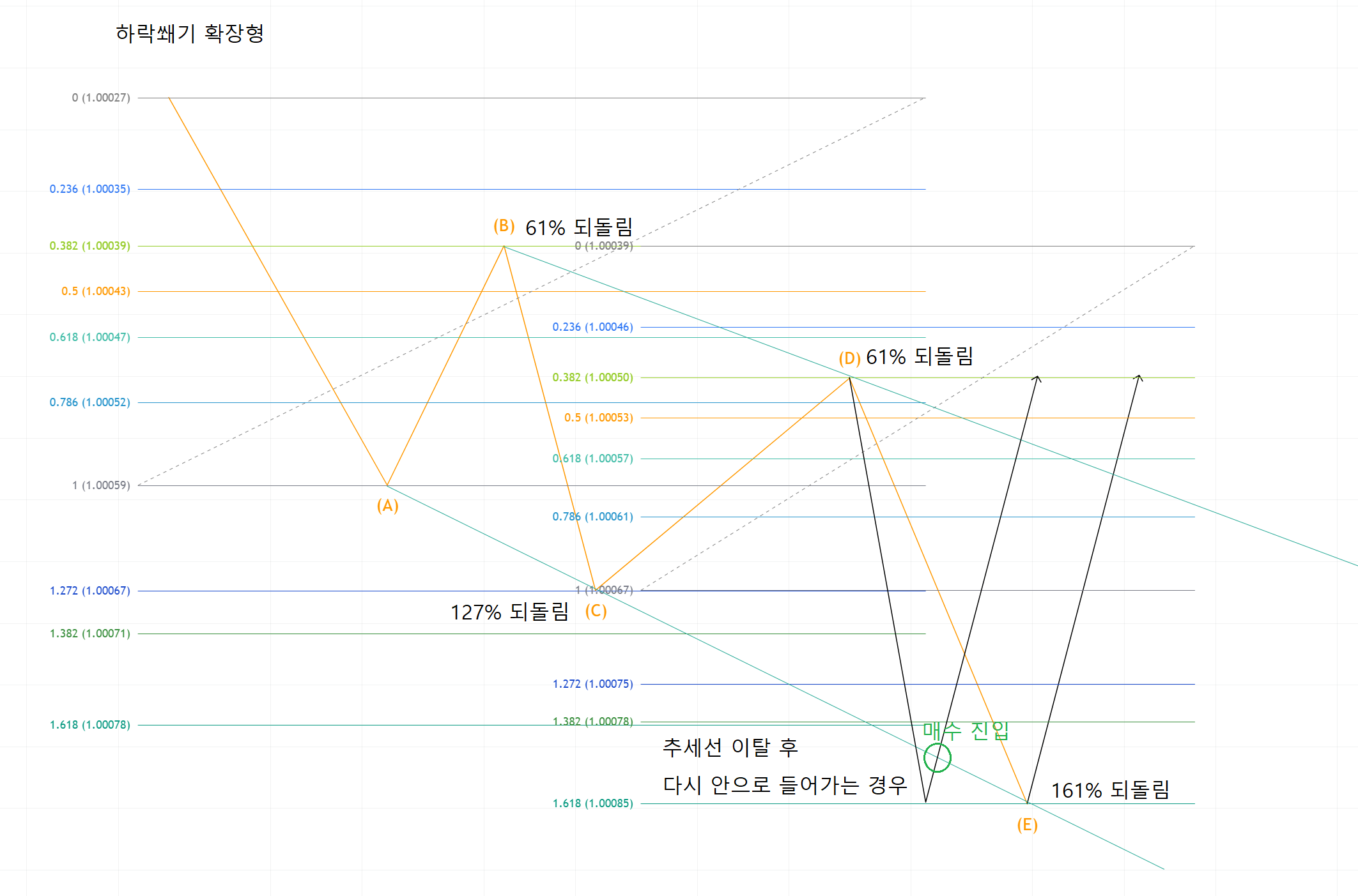 이번에 파동 수렴 패턴에 올려좋은 조정 구간 패턴 공부한 걸 적용하시면서