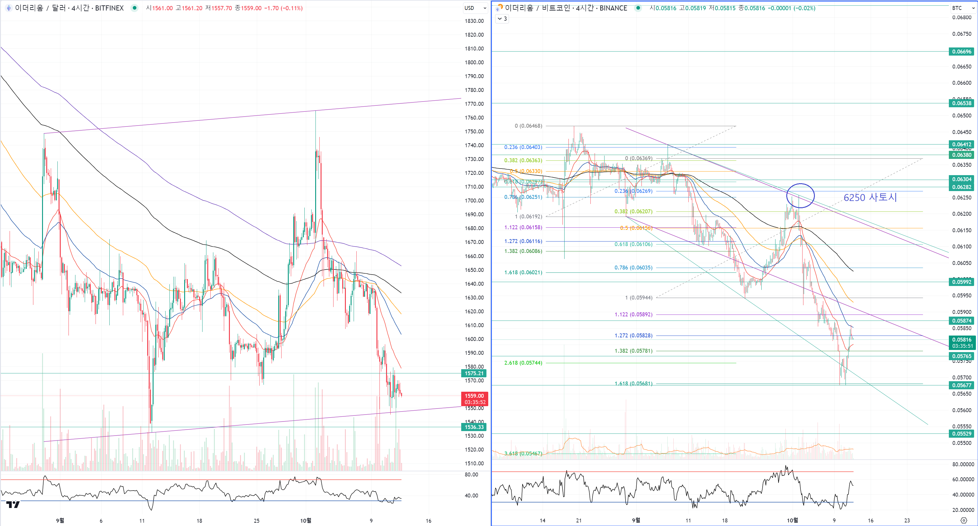 왼쪽 btc 차트에서도 피보나치 비율과 함께