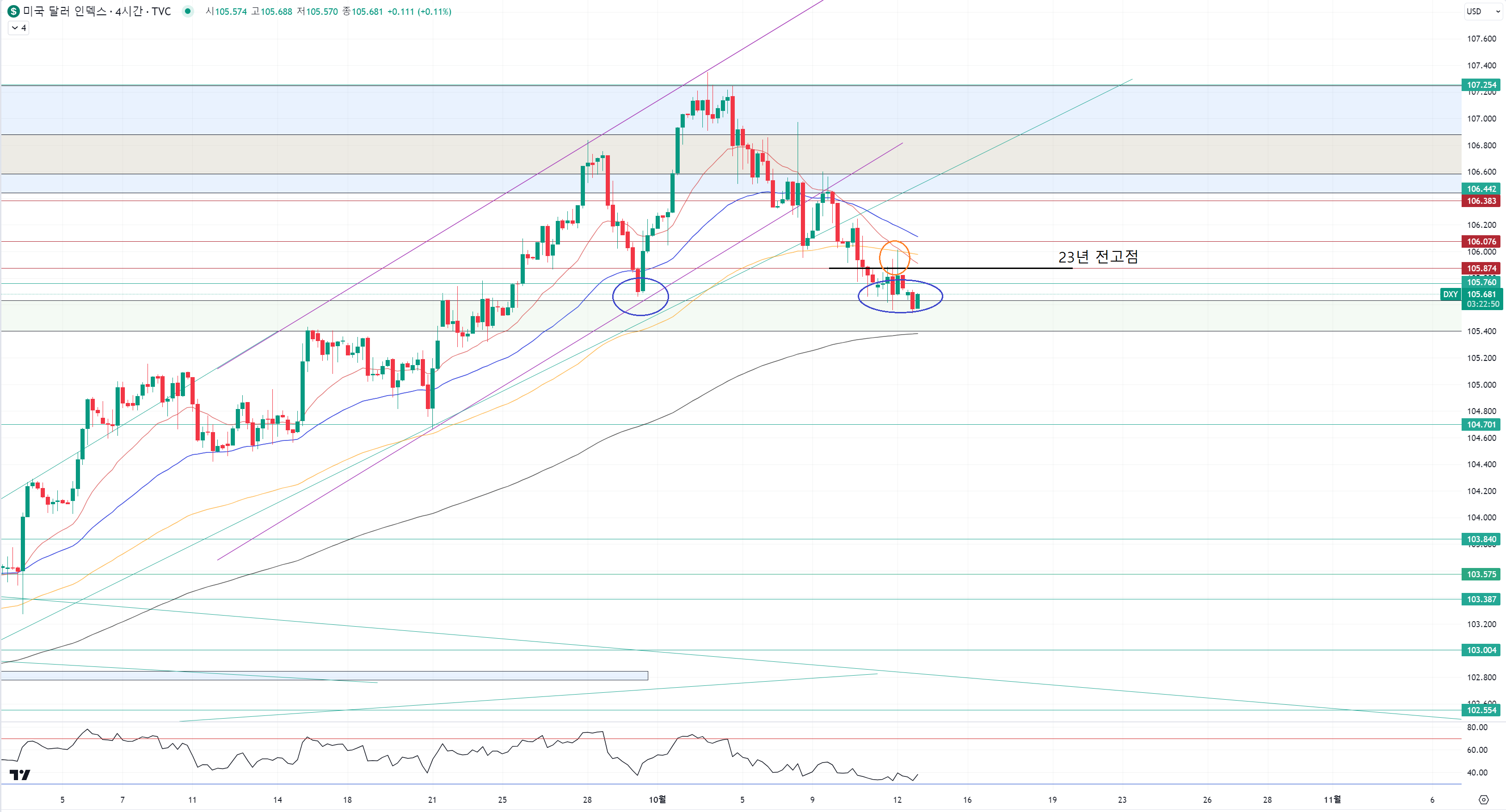 오히려 지금은 주황색 동그라미와 10월 2일 고점을 기준으로 매수 결정 구간에 와있어요.