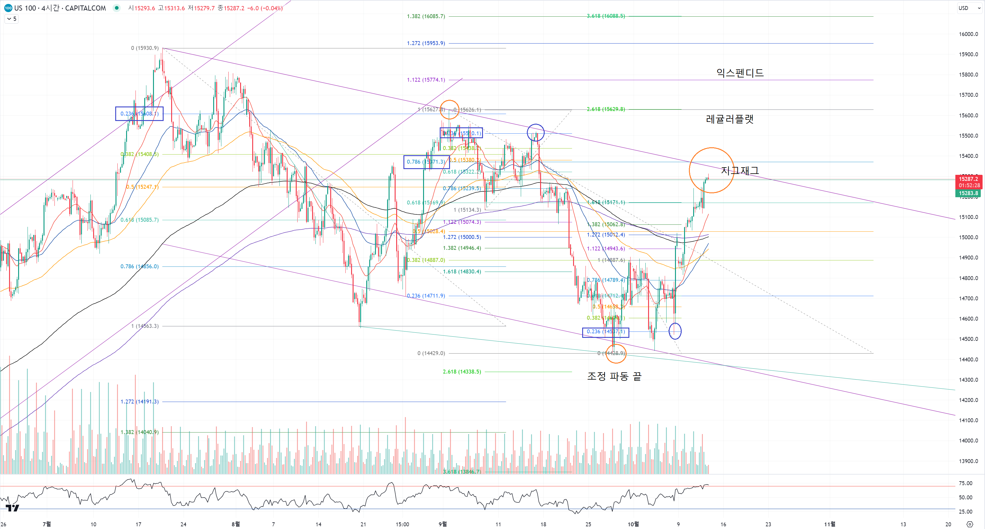 달라가 쌍바닥 반등에 성공하면 나스닥은 상단 도착에 이어 조정이 나오기 좋겠죠?