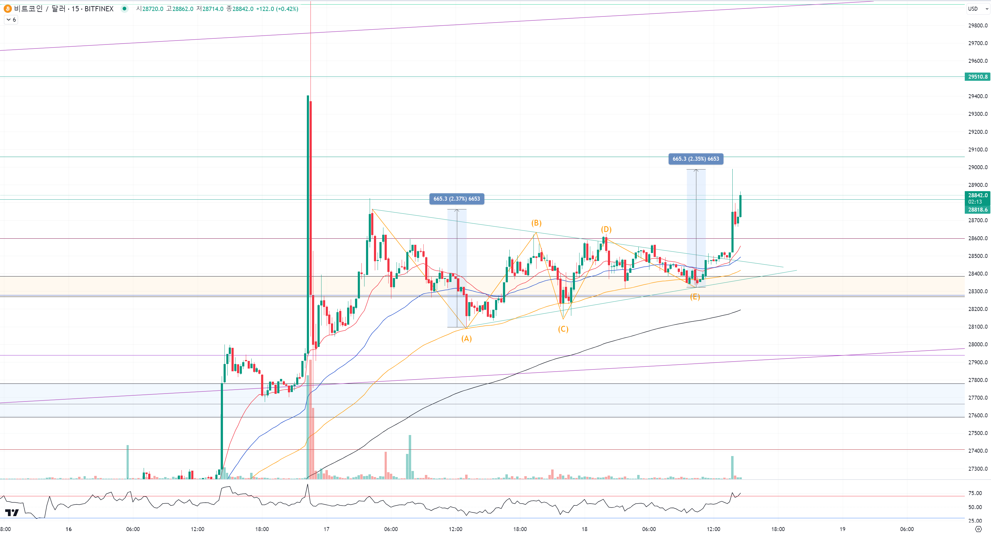 비트코인에서도 삼각수렴 모습이 보입니다.