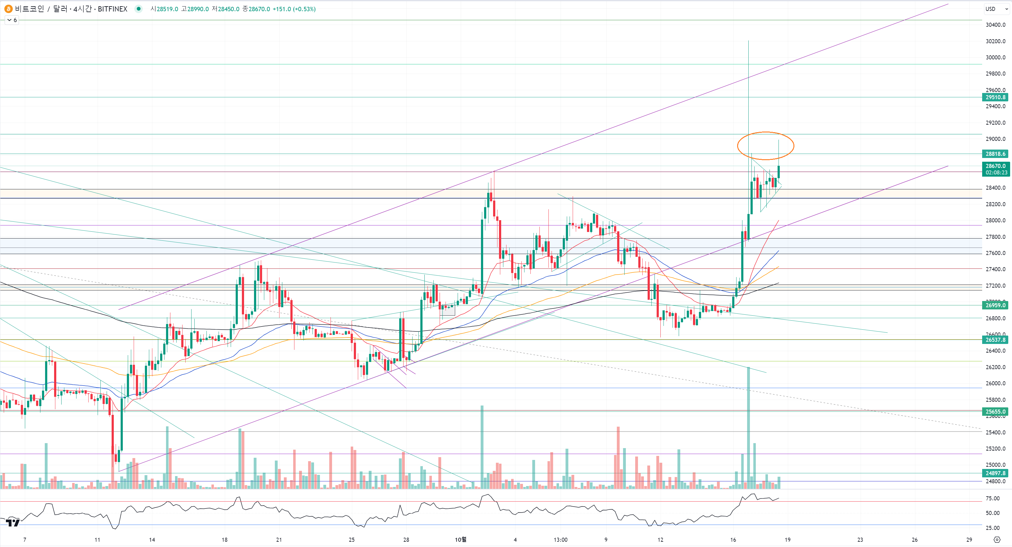 7월부터 만들어준 하락평행채널 상단을 돌파하게 됩니다.