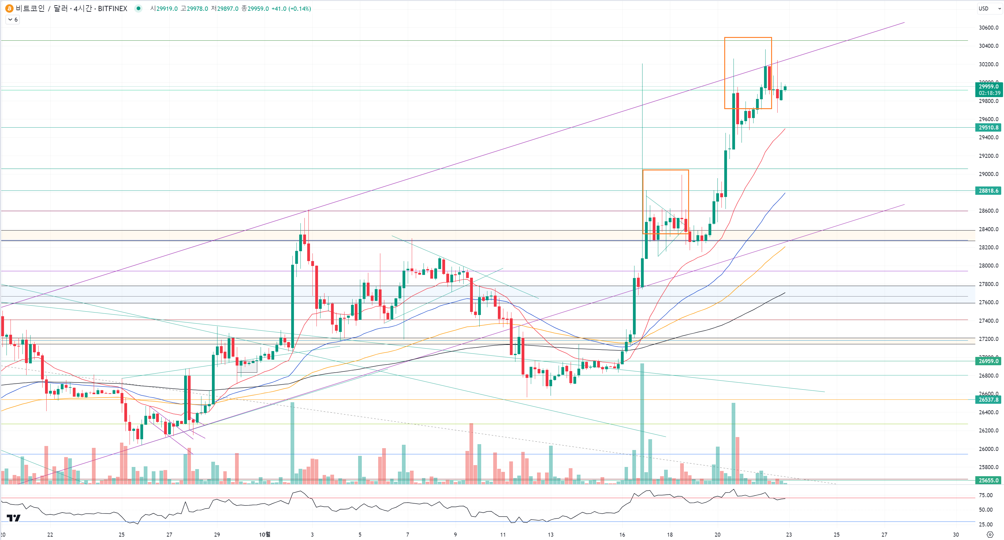 | 비트코인 장대양봉 고점 갱신. 추세와 리듬 패턴 해석. (0) | 2023.10.24 |