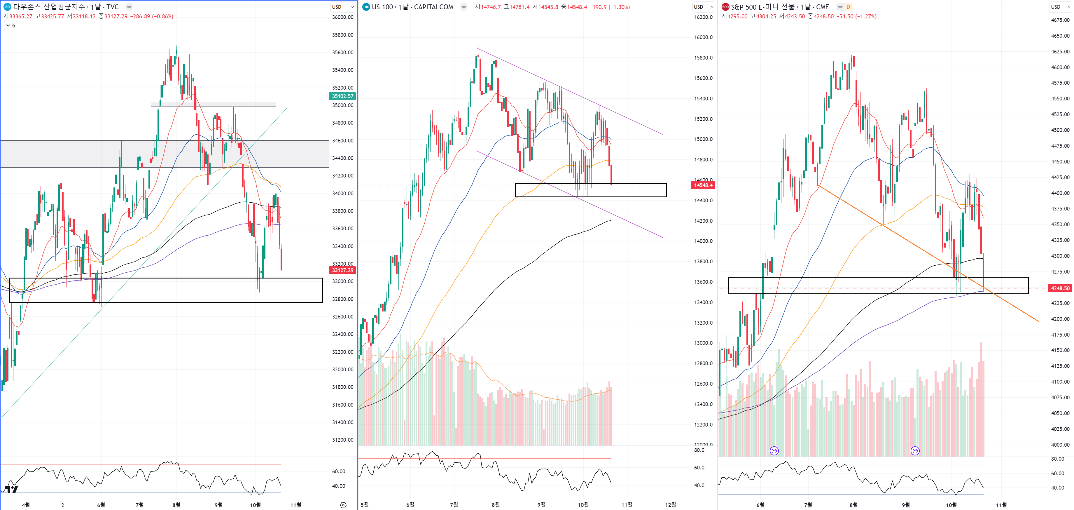 하면 여기서 변수이면서 동시에 미국 증시 3개가 환승 구간에 도달했습니다.