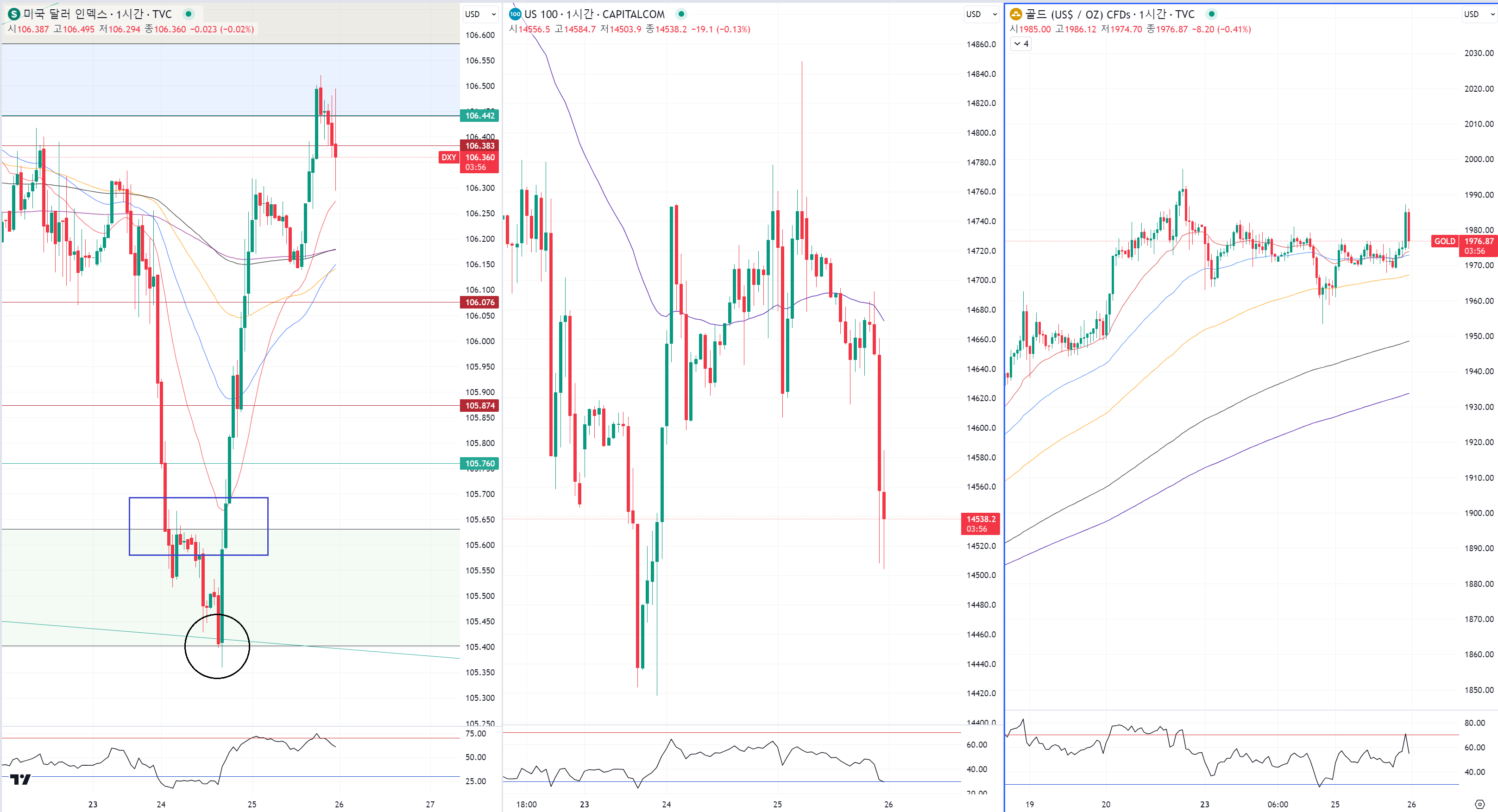 달라부터 보면 검은색 동그라미에서 헤드앤숄더 넥라인에서 반등이 있었습니다.
