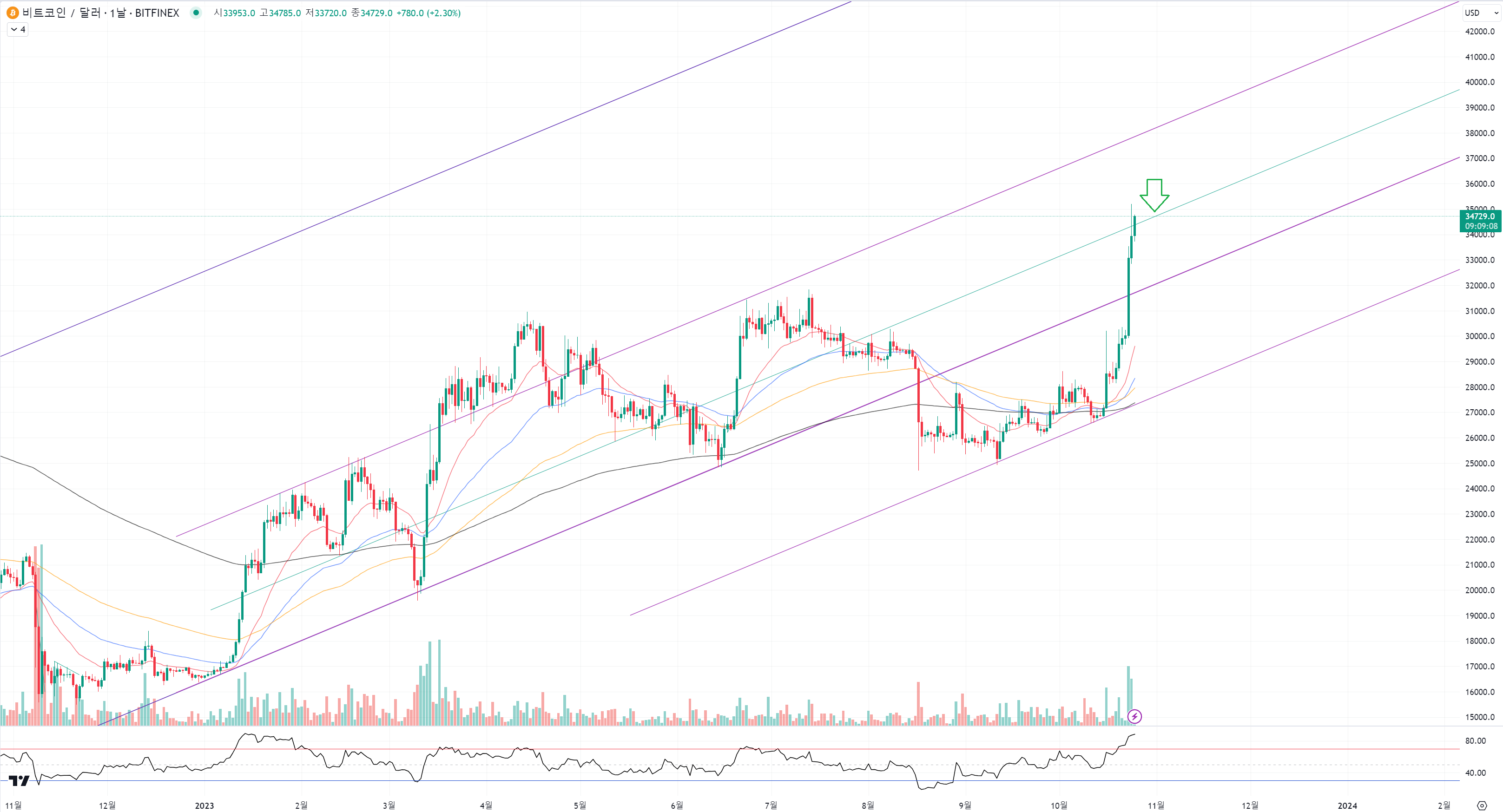 | 비트코인 장대양봉 고점 갱신. 추세와 리듬 패턴 해석. (0) | 2023.10.24 |