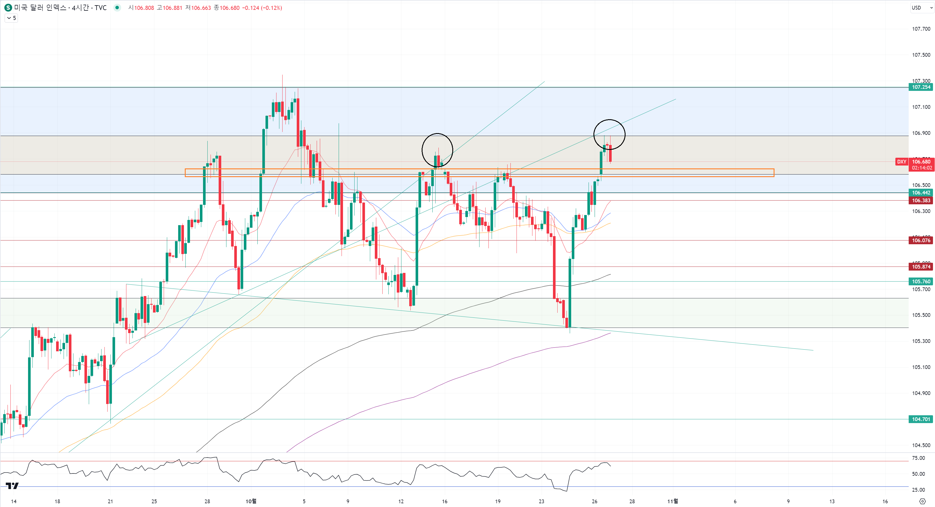 아무리105.8이라는 전고점 아래에서는 계속 매수세가 나온다고는 하지만