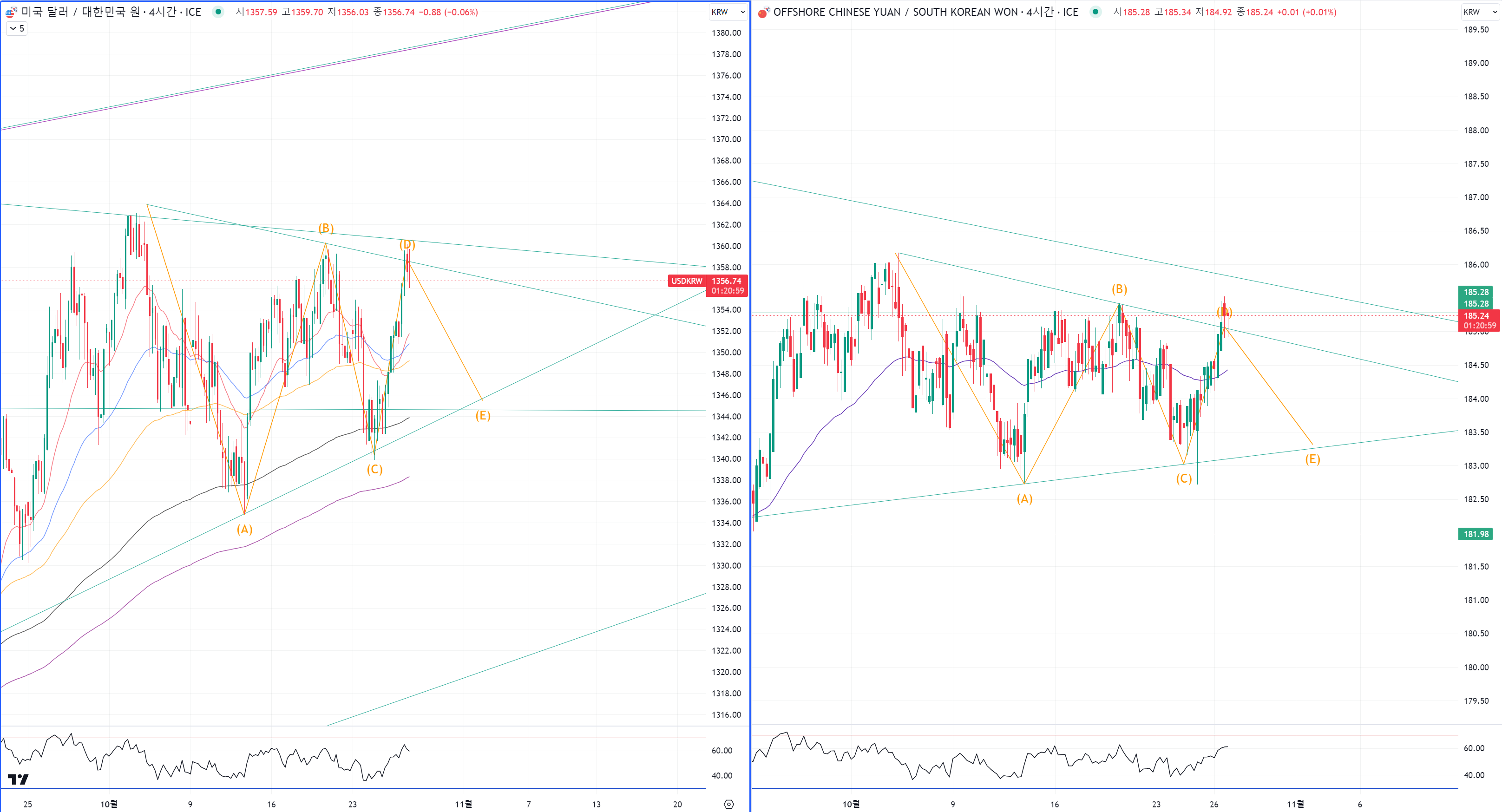 한국 환율에서도 아직은 추세선 이탈은 나오지 않았습니다.
