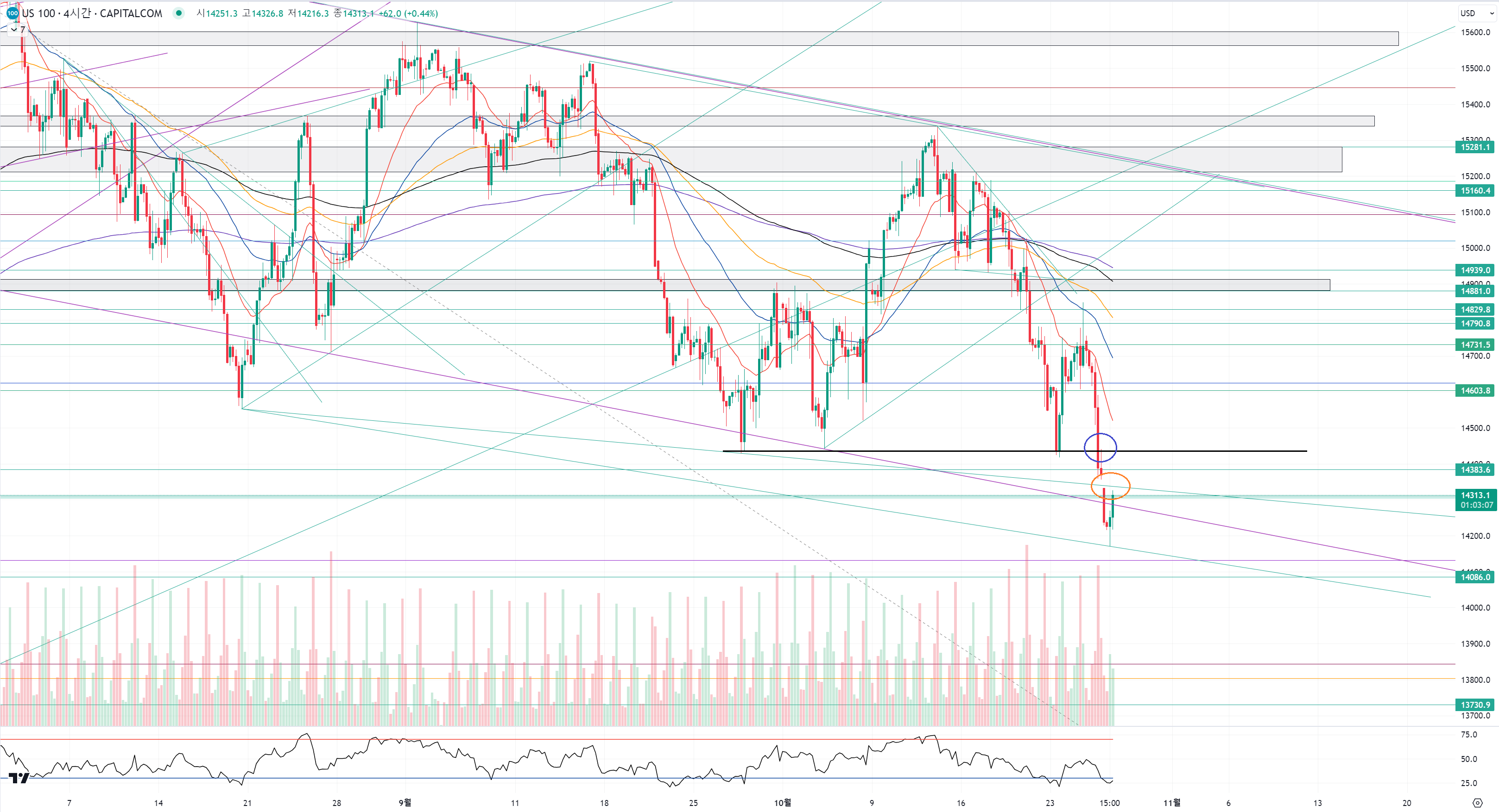 파랑색 동그라미 보면 단기적인 평행채널 하단에 도달했는데