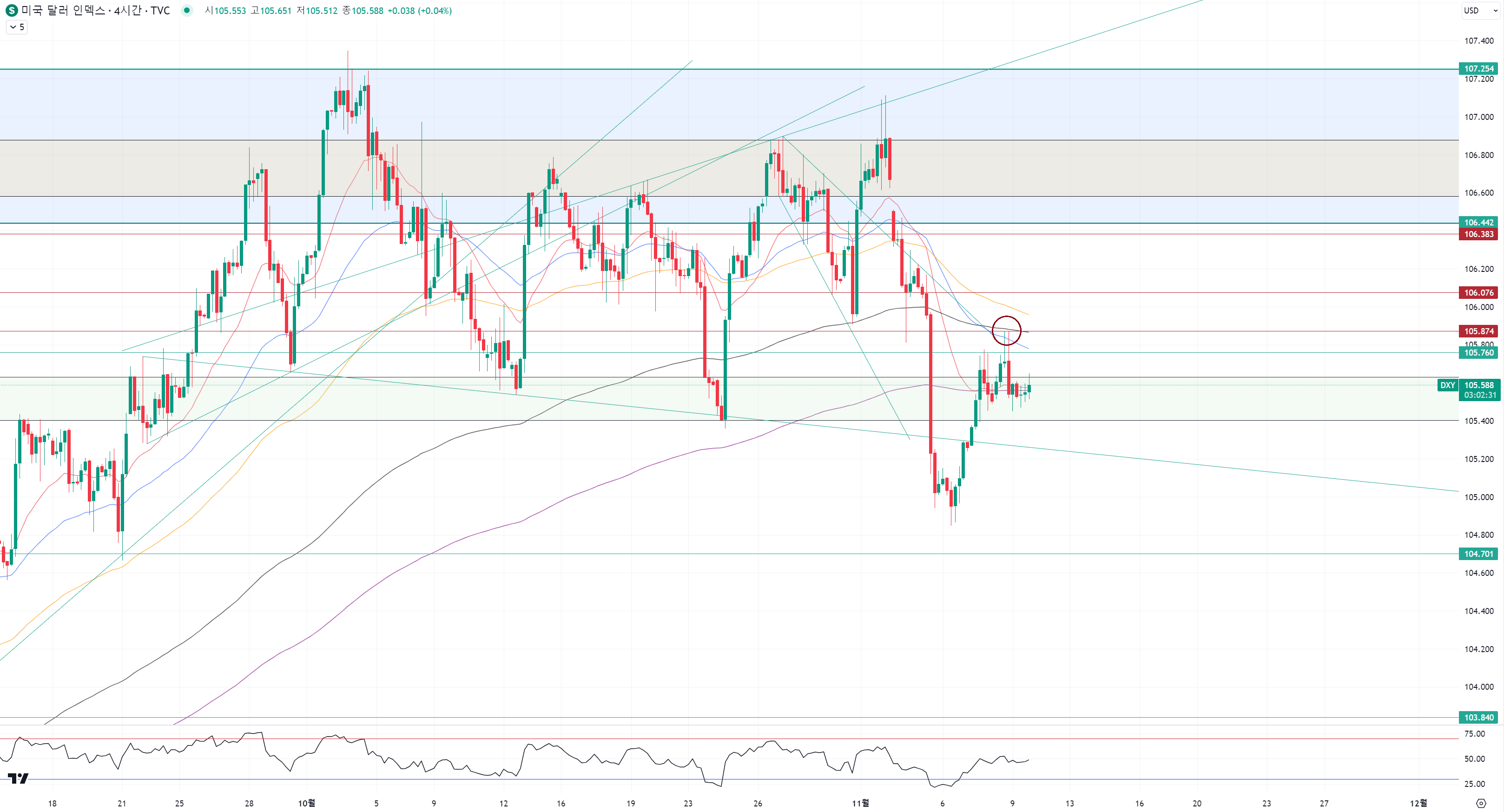 11월 10일 금요일이 미장이 휴장이라서 결국 목요일인 오늘 방향을 결정해줄 확률이 높습니다.