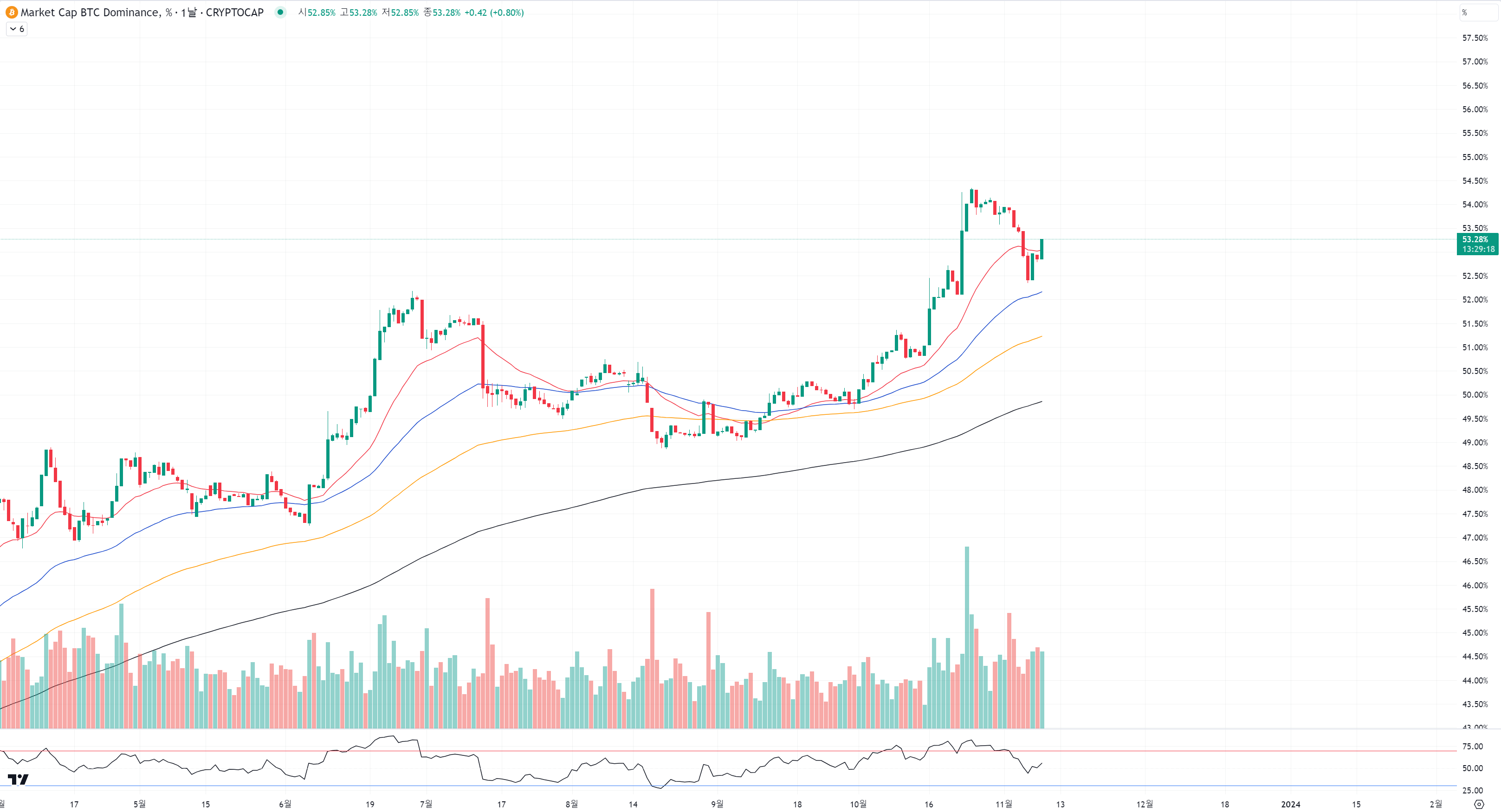 코인 시장은 미 휴장과 별개로도 도미넌스 상황보면서