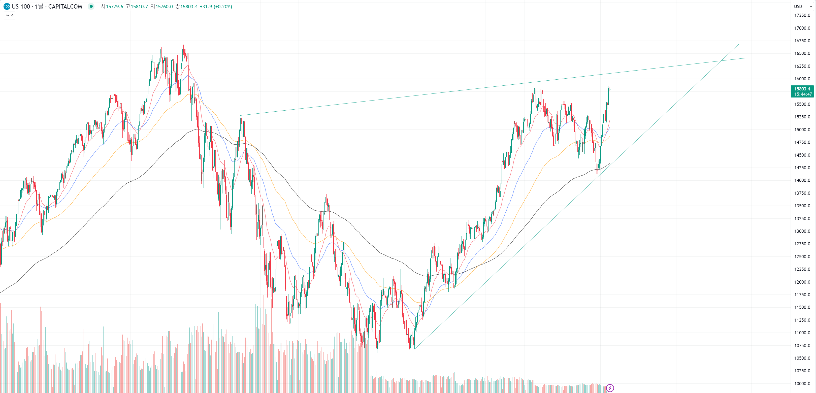 전고점 이후에 16000~16100부터 꼬리가 모인 저항 구간이 나오는데