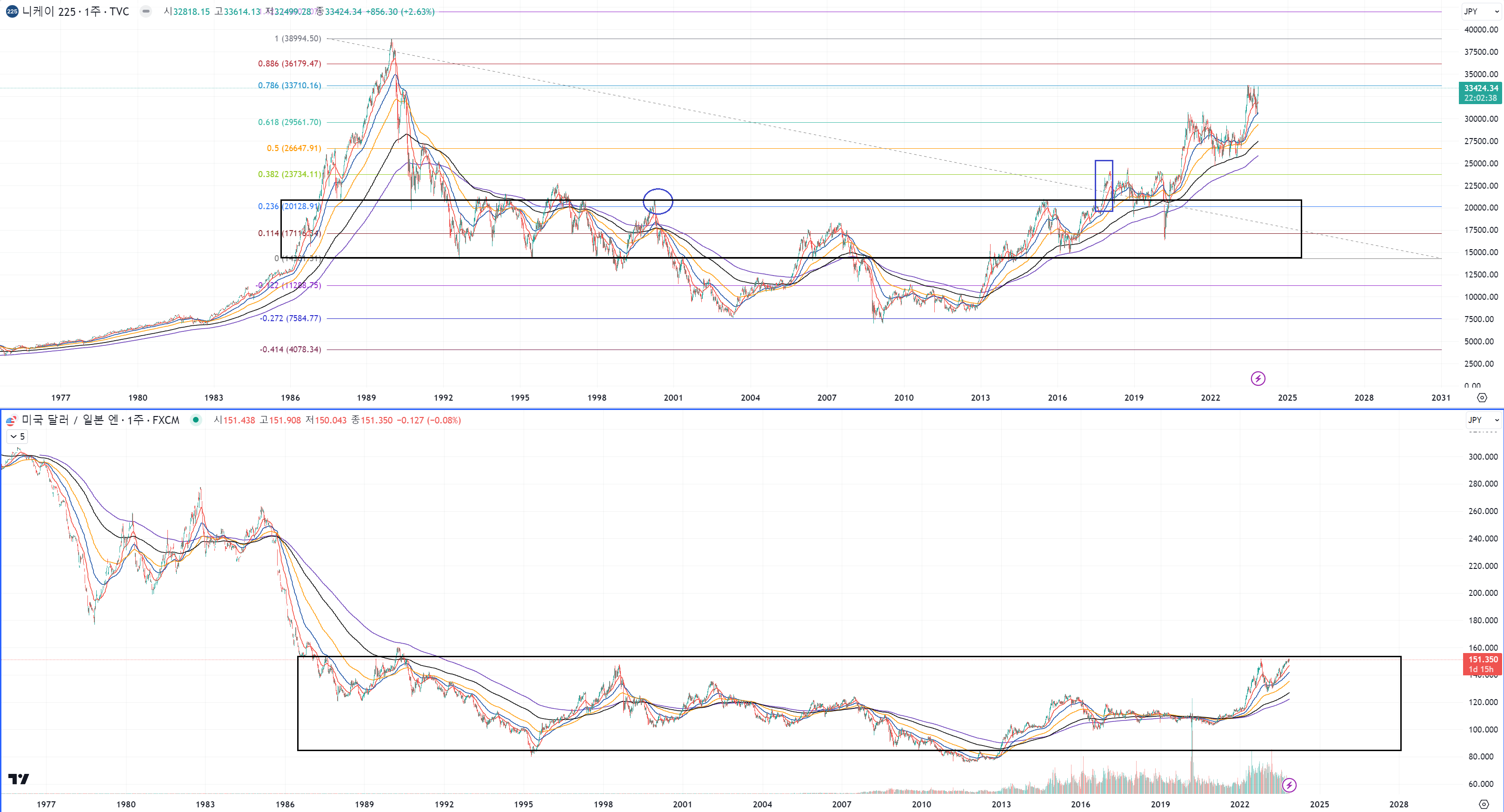 현재 기준으로 잃어버린 30년에서 고점을 갱신한 기준이 되는 구간이기 때문입니다.