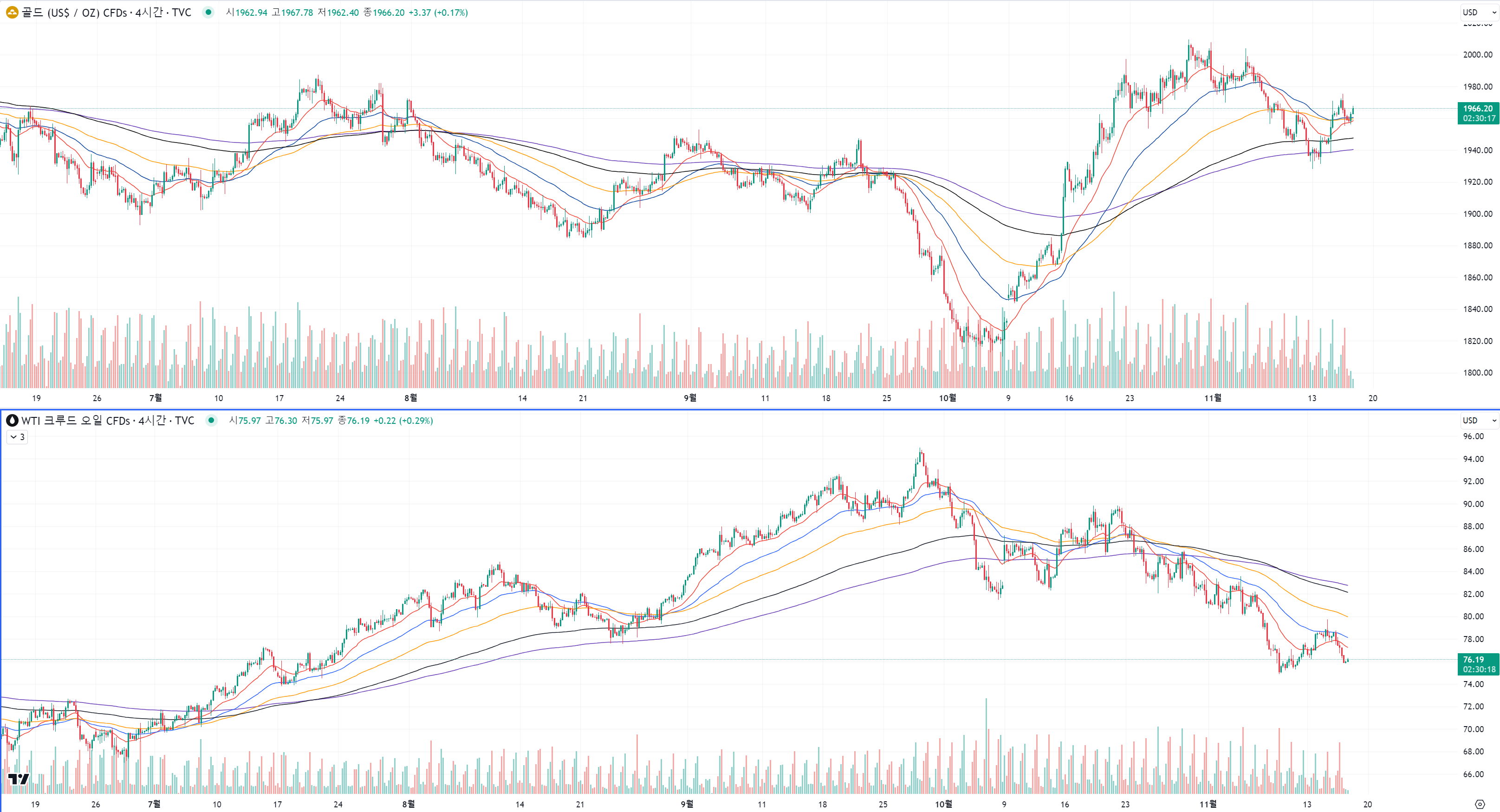 그럼 골드에서 변동성이 나온 파랑색 구간 10~현재 부분만 체크해두고 다른 차트도 봅니다.