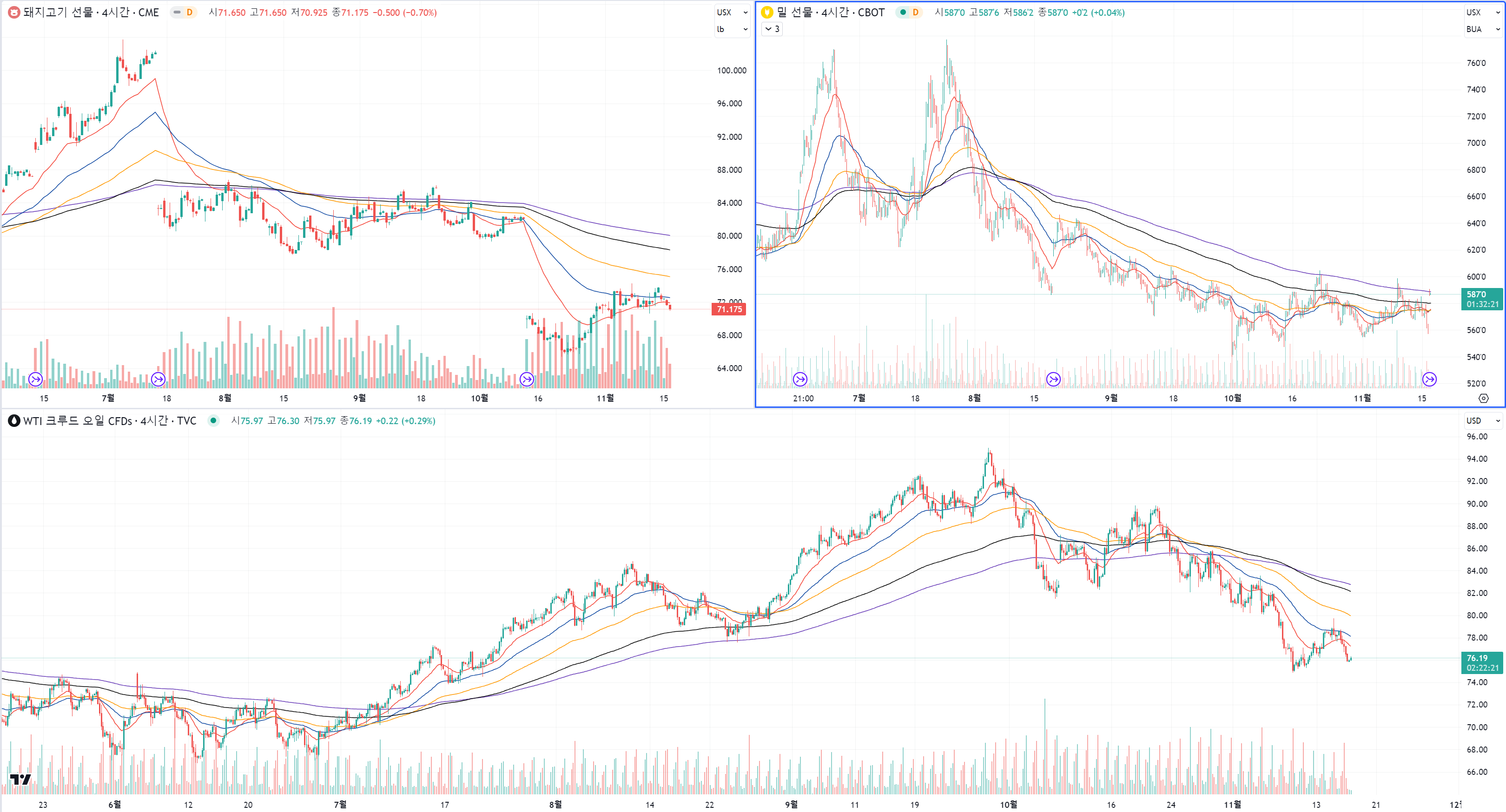 여기에 그냥 단순하게 겨울이 오면 오일 많이 쓰려나? 하면서 식량가격이 그때 어떤 모습으로 움직일지 살짝 보는 정도예요.