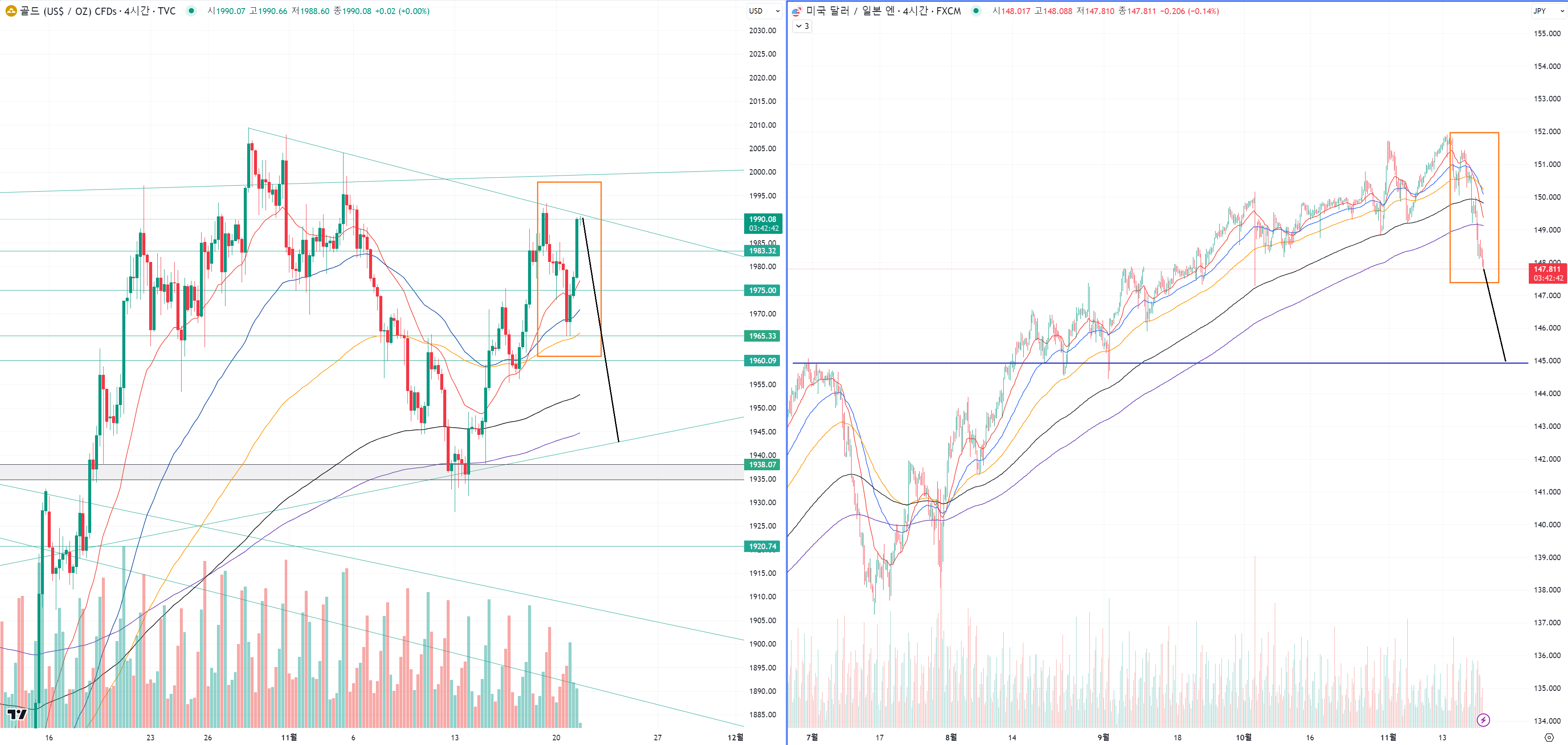 엔화, 골드가 커플링으로 동반 하락을 하면서