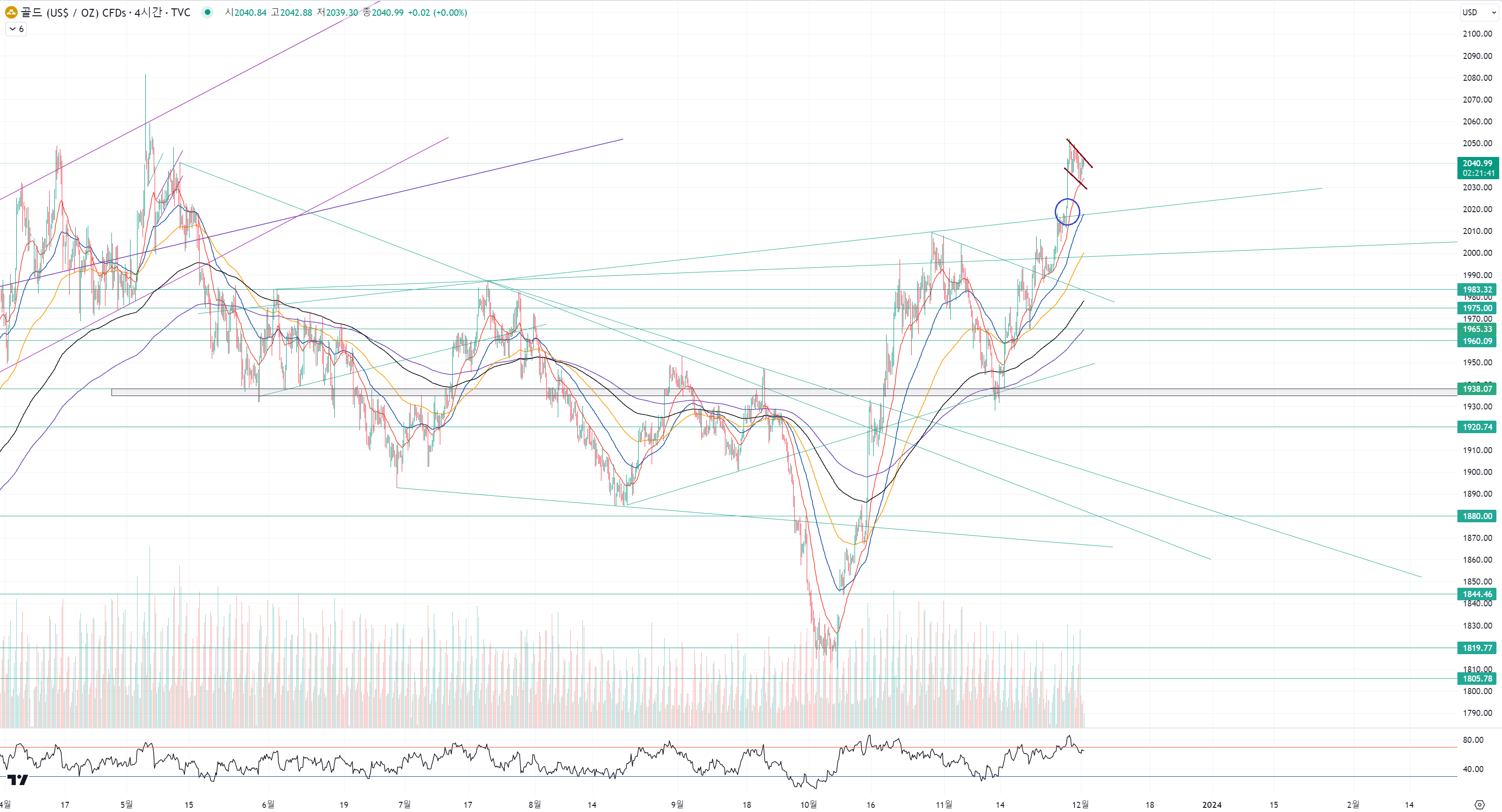주봉 관점에서 보면 골드는 이번주에 2035를 넘어가며 마무리 되면