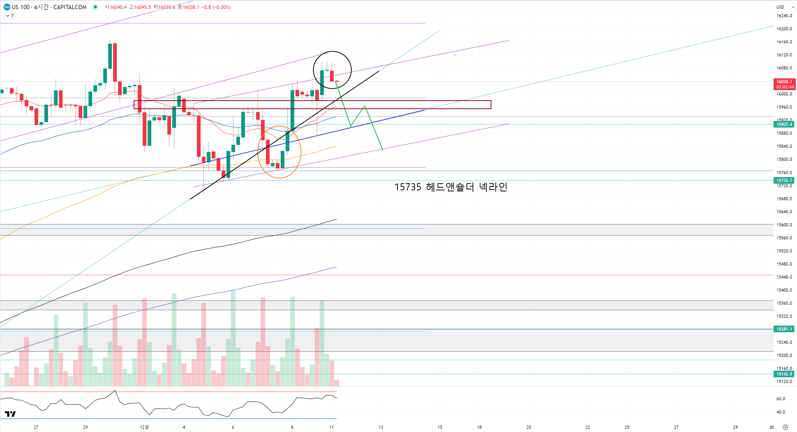 나스닥은 평행채널에서 상승 횡보 중이었는데