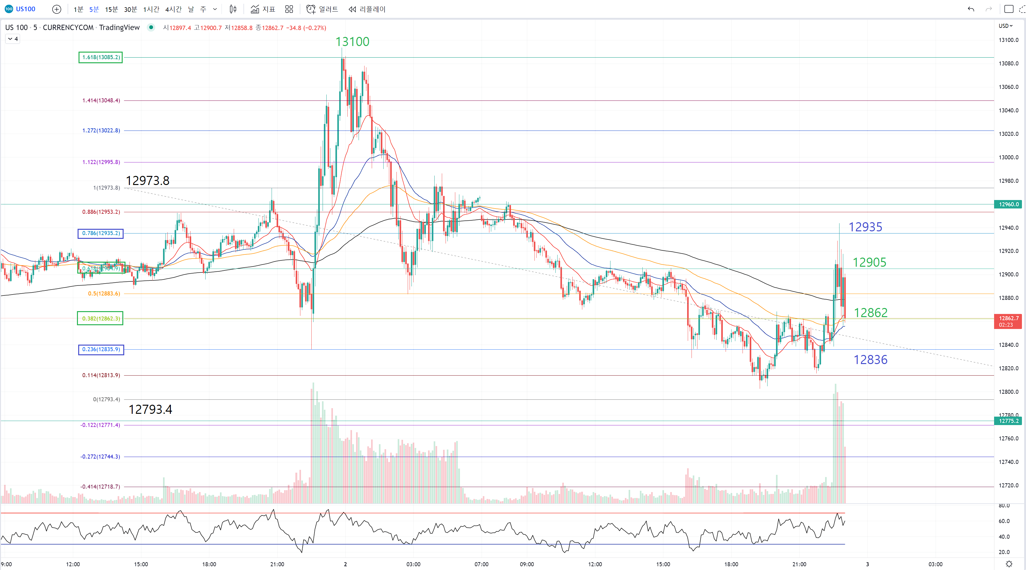 어제 최고점이 13100이면서 1.618에서 나왔기 때문에