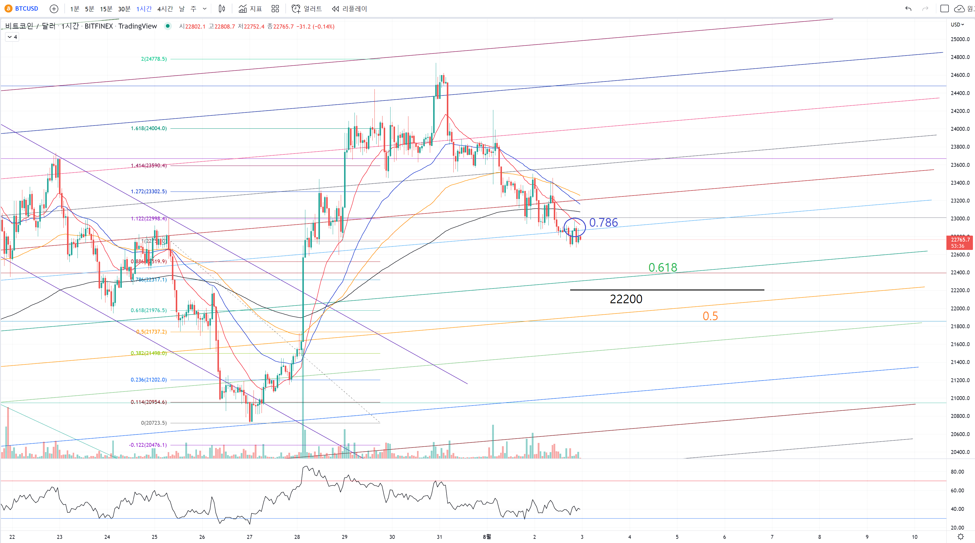그리고 어제 중요한 0.236 - 0.786 - 1.272 되돌림도 계속 영향을 주고 있습니다.