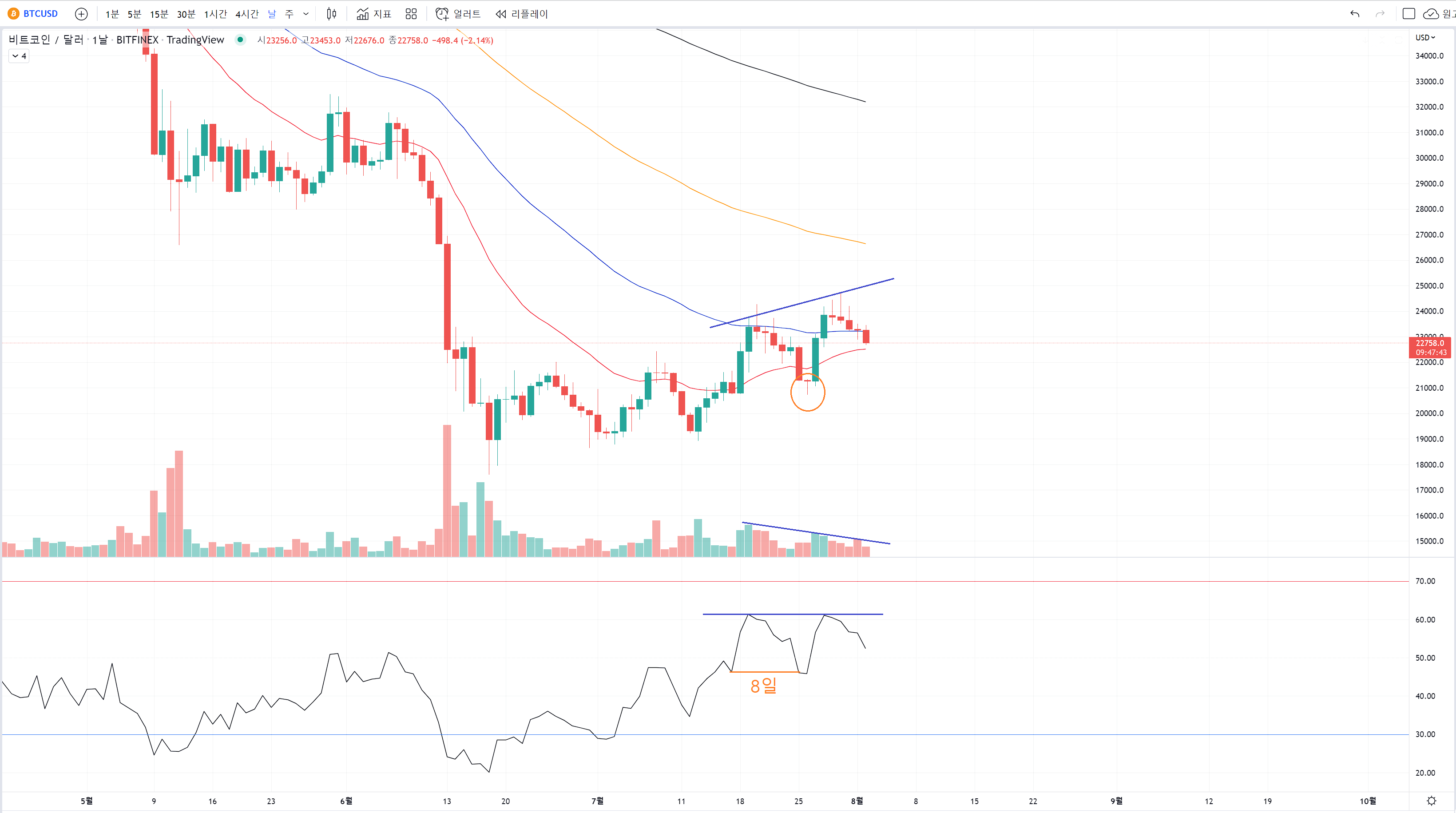 rsi 관리가 안되면서 넓이에서 불리한 모습이 나왔을때입니다.