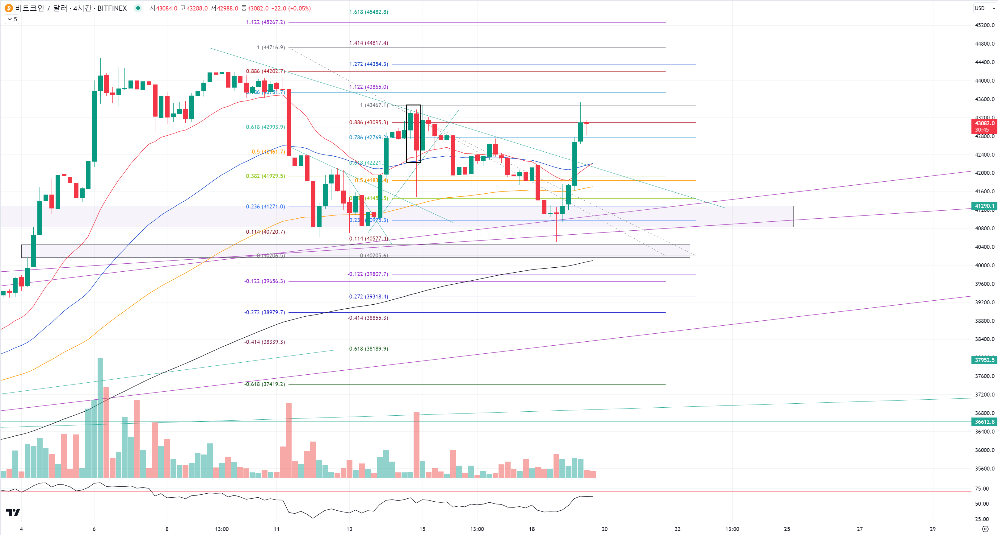 지금 같은 상황에서는 35000~38000 이 구간 하락까지도 봐야겠죠.