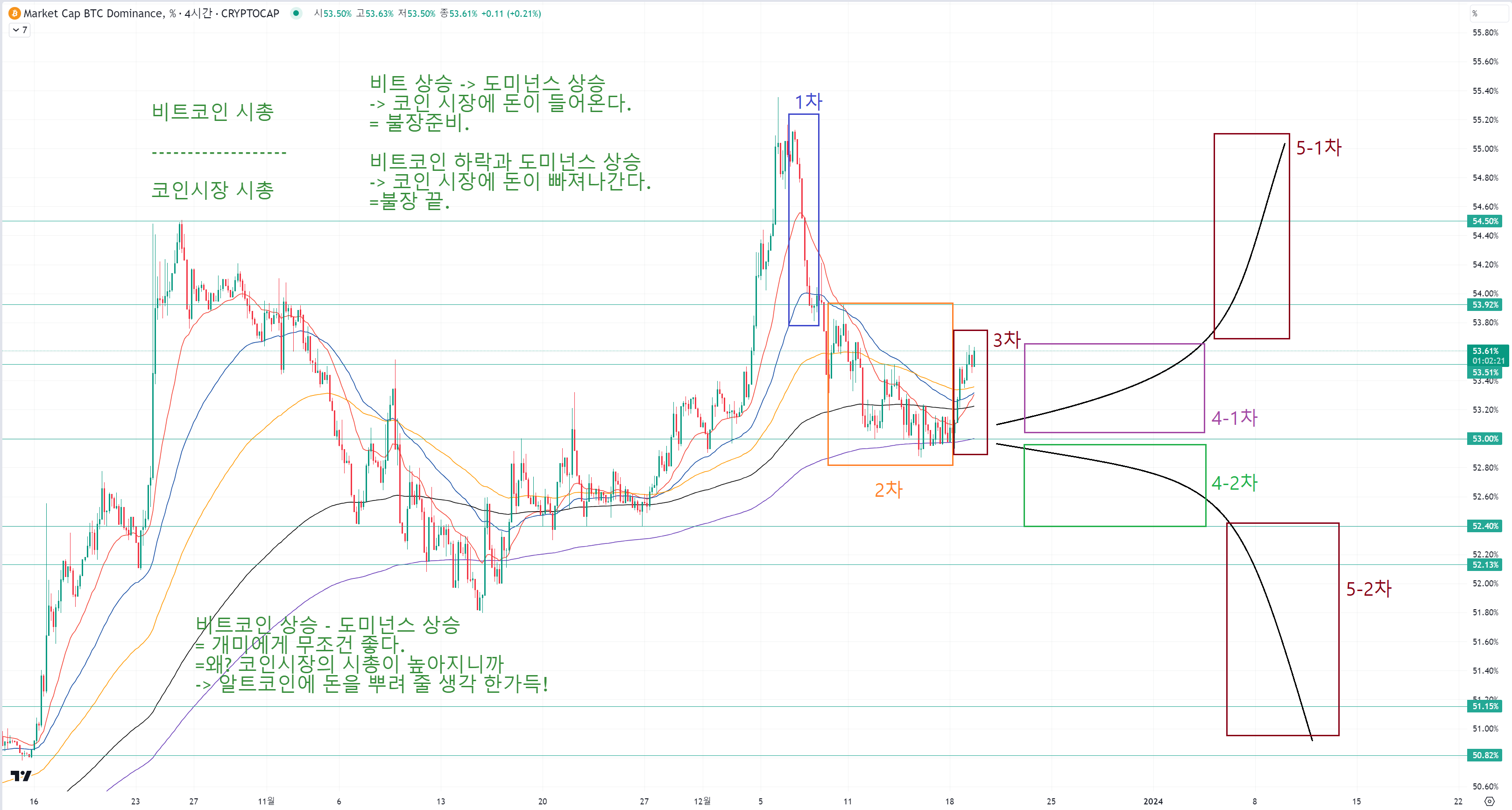 어쨌든 도미넌스 상황에서 3차 모습에서 비트코인 방향을 확인했다면