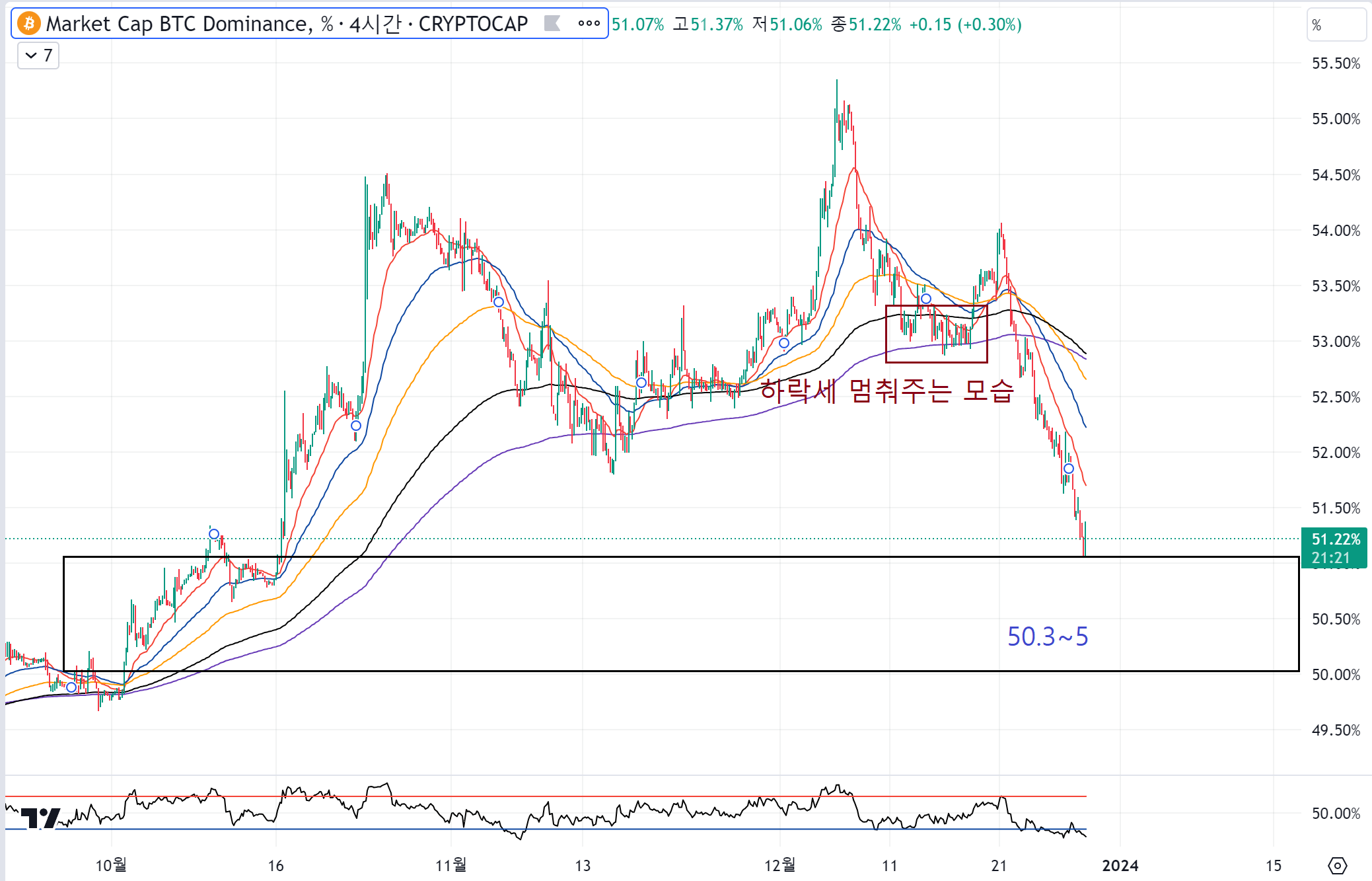 그리고 50~51에서 변곡점이 나오고 도미넌스가 다시 상승할때,