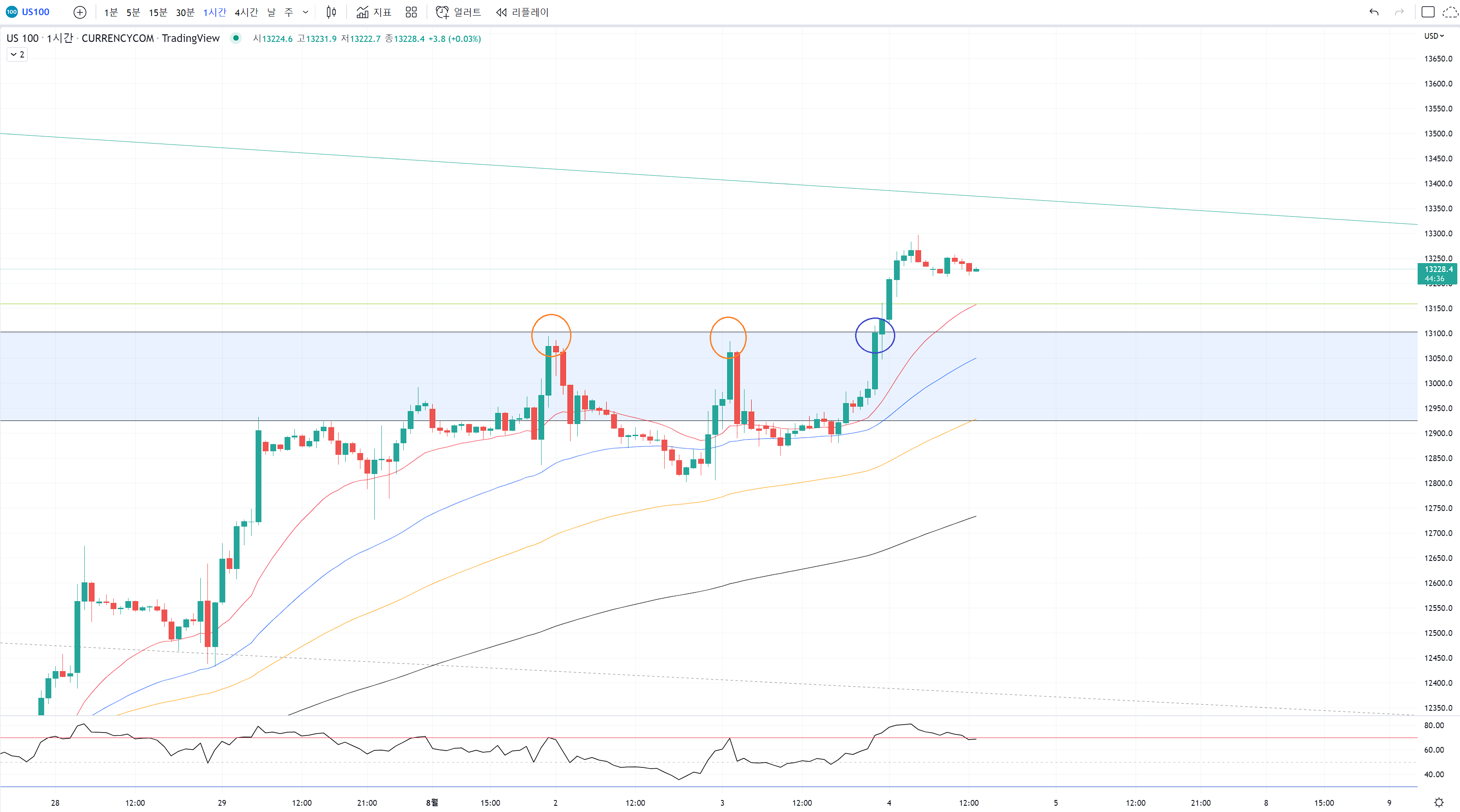 나스닥도 돌파한 파란색 저항구간인 12900~13100을 지지해줘야 합니다.