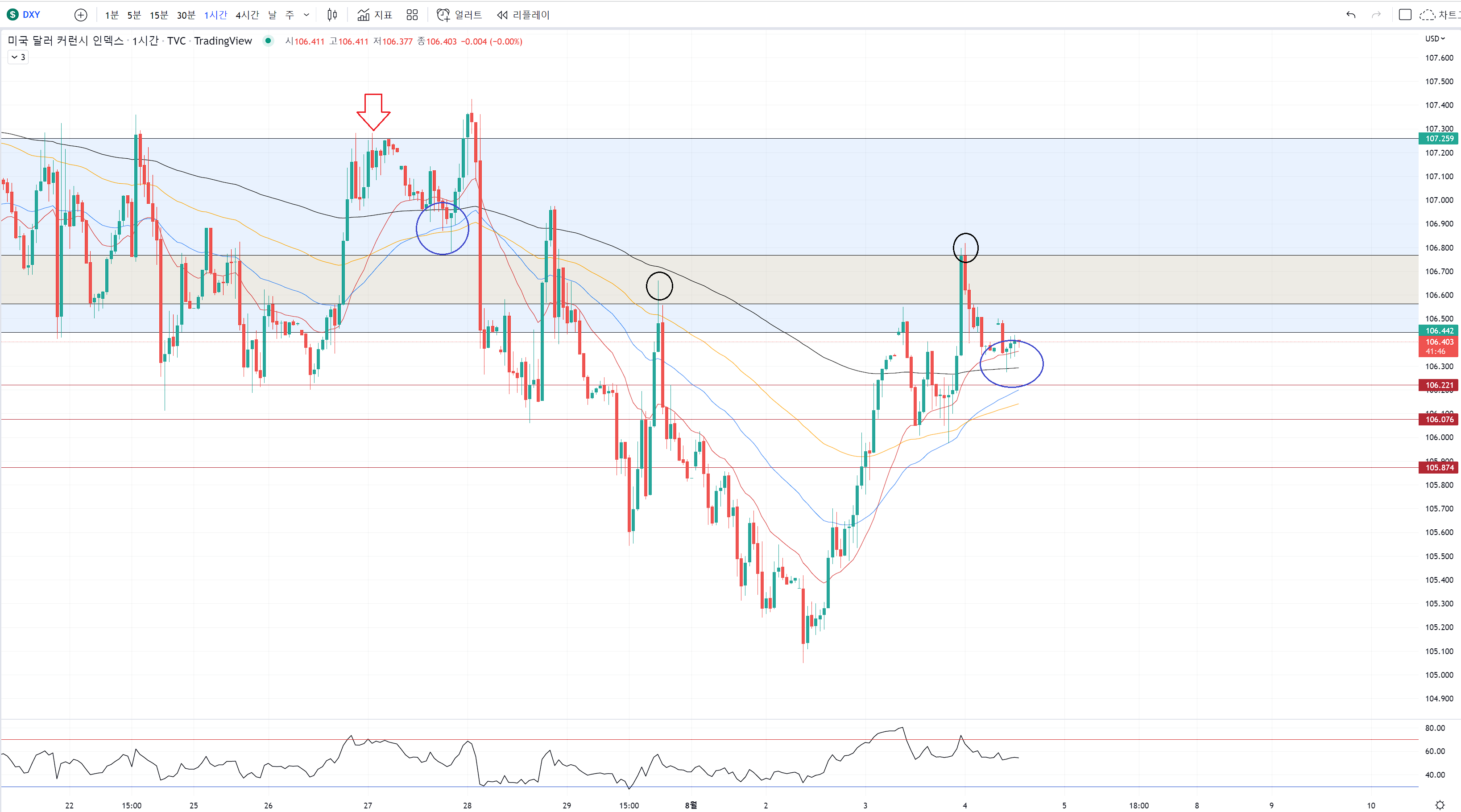 달라의 상승에서는 하락을 하며 거품을 잠시 빼는 모습을 보여주고