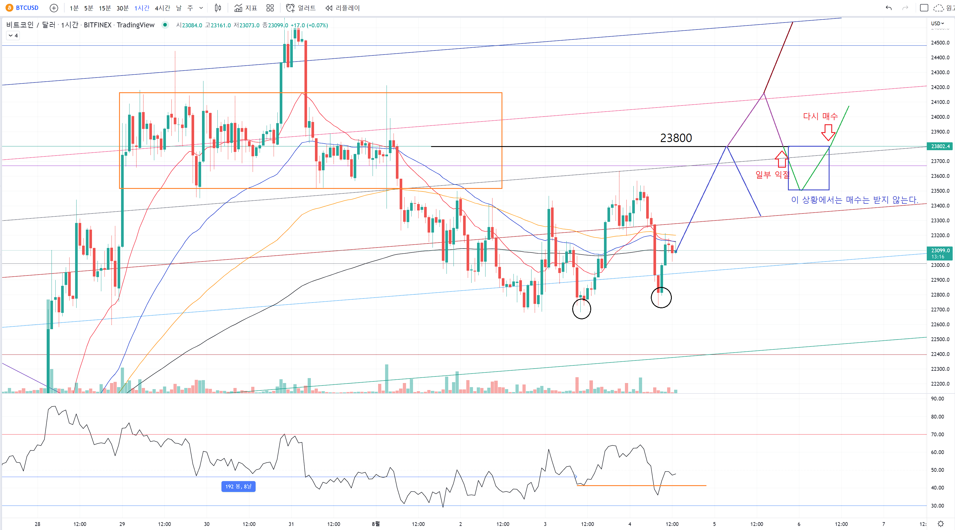 그러다가 다시 23800을 돌파하면 새로운 매수를 붙는 방식으로 대응을 해야합니다.