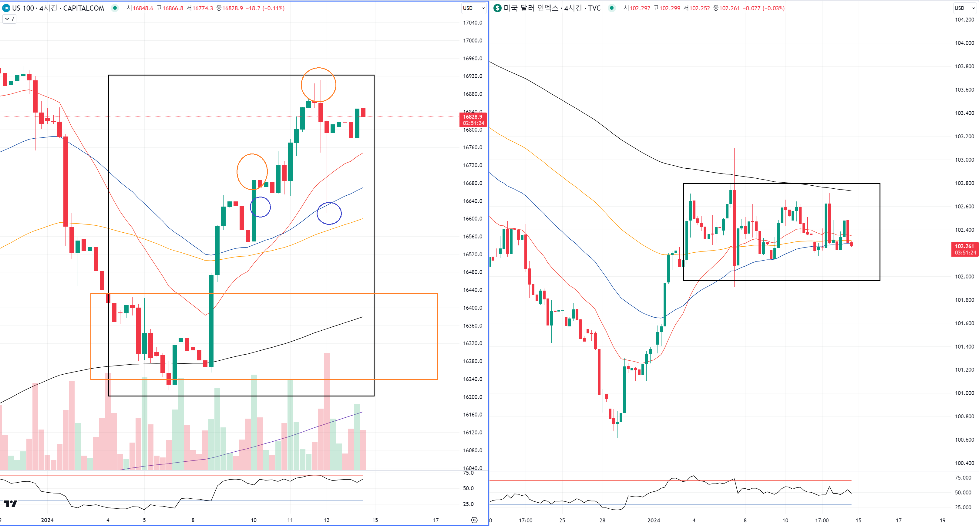 오른쪽 달라가 횡보하는데 같은 기간 나스닥은 상승했어요.