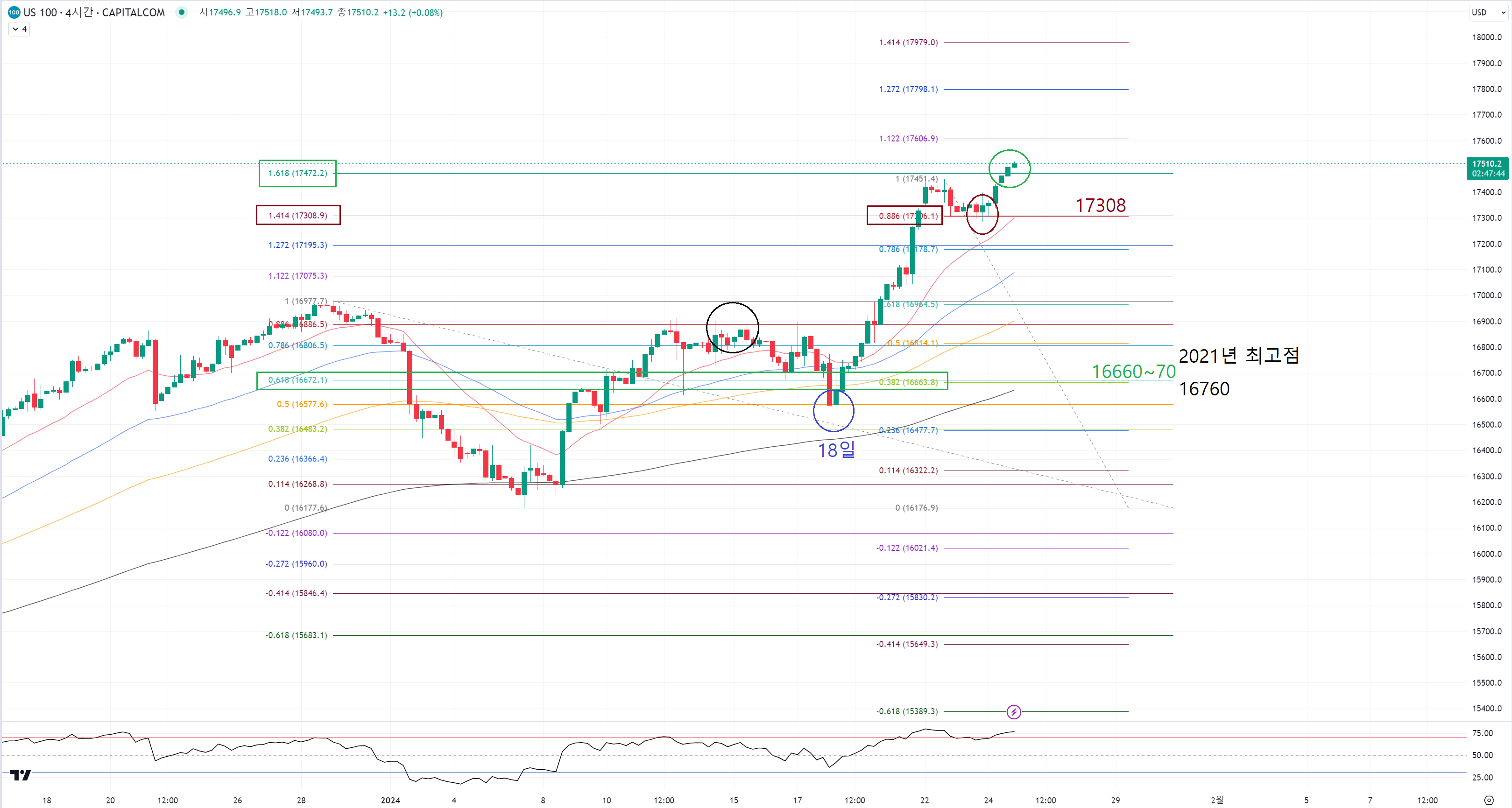 22~23일에 지지확인까지 해놨기 때문에 지금 기준으로 트레이더들이 노리는 자리가 17308밖에 없어요.