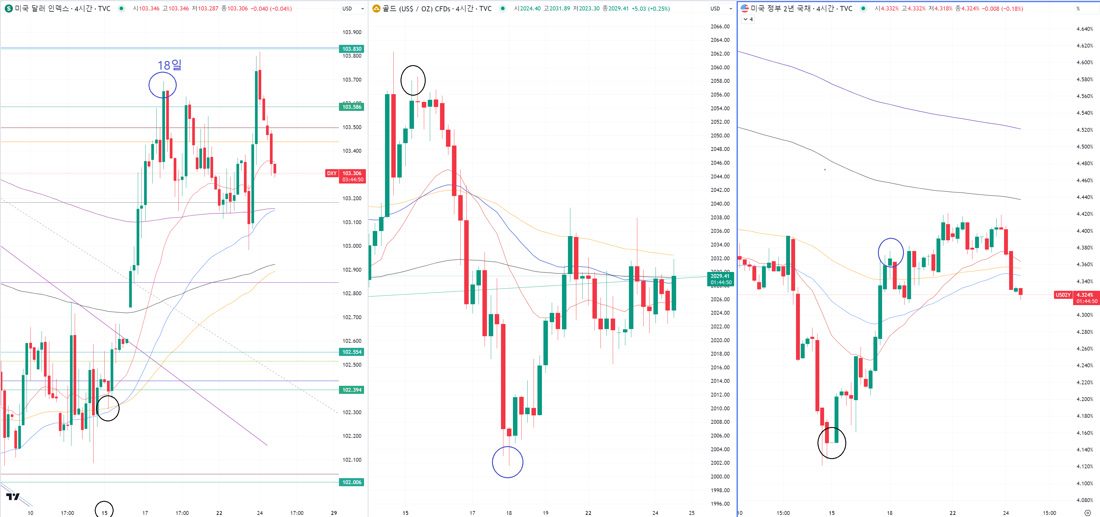이에 맞춰 골드와 미국 채권 금리는 평범하게 움직이고 있어요.