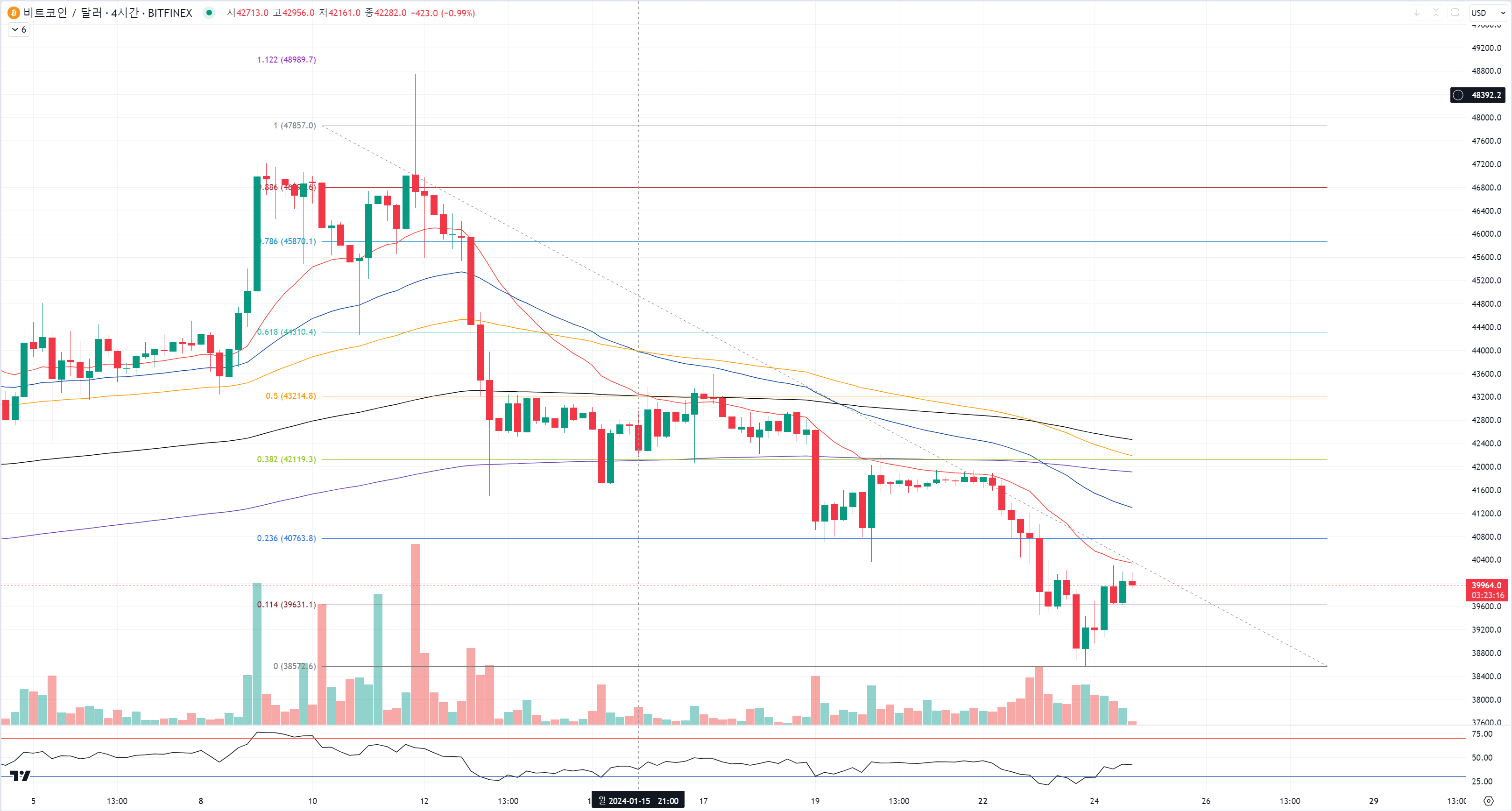 | 비트코인 무기력한 하락과 대응. rsi 활용. (1) | 2024.01.23 |