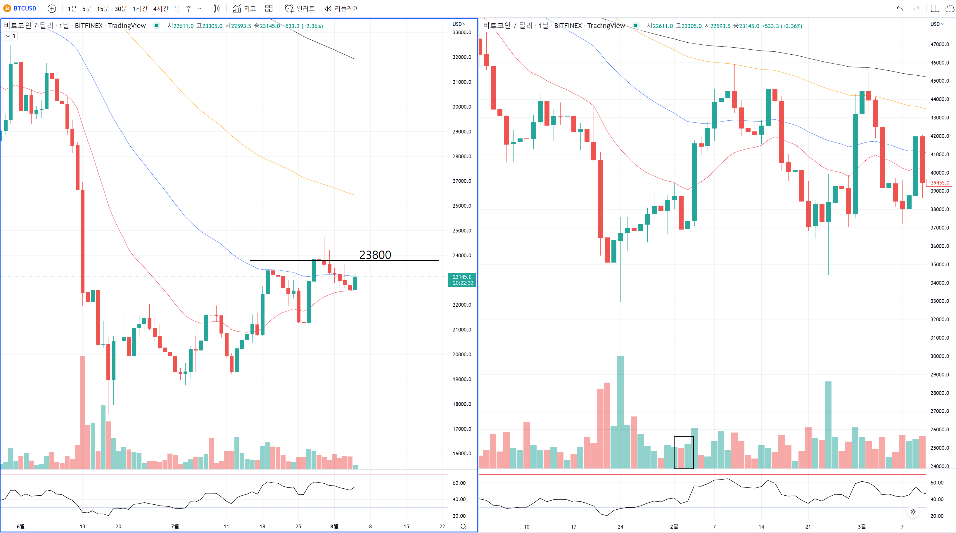 그럼 이제부터 23000 초반을 확실하게 돌파한 다음을 봐야 하는데