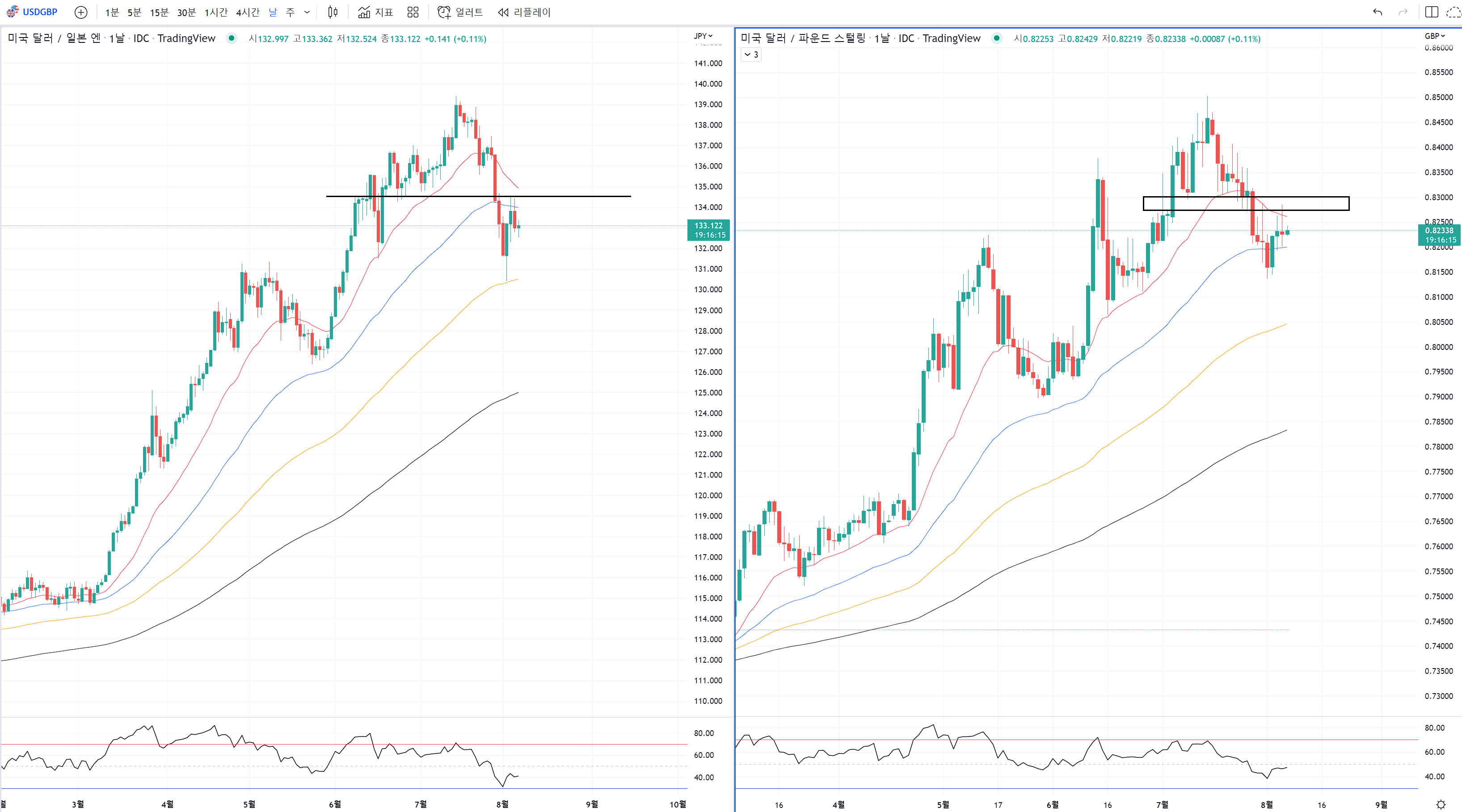 왼쪽은 엔달라 차트이고, 오른쪽은 파운드달라 차트입니다.
