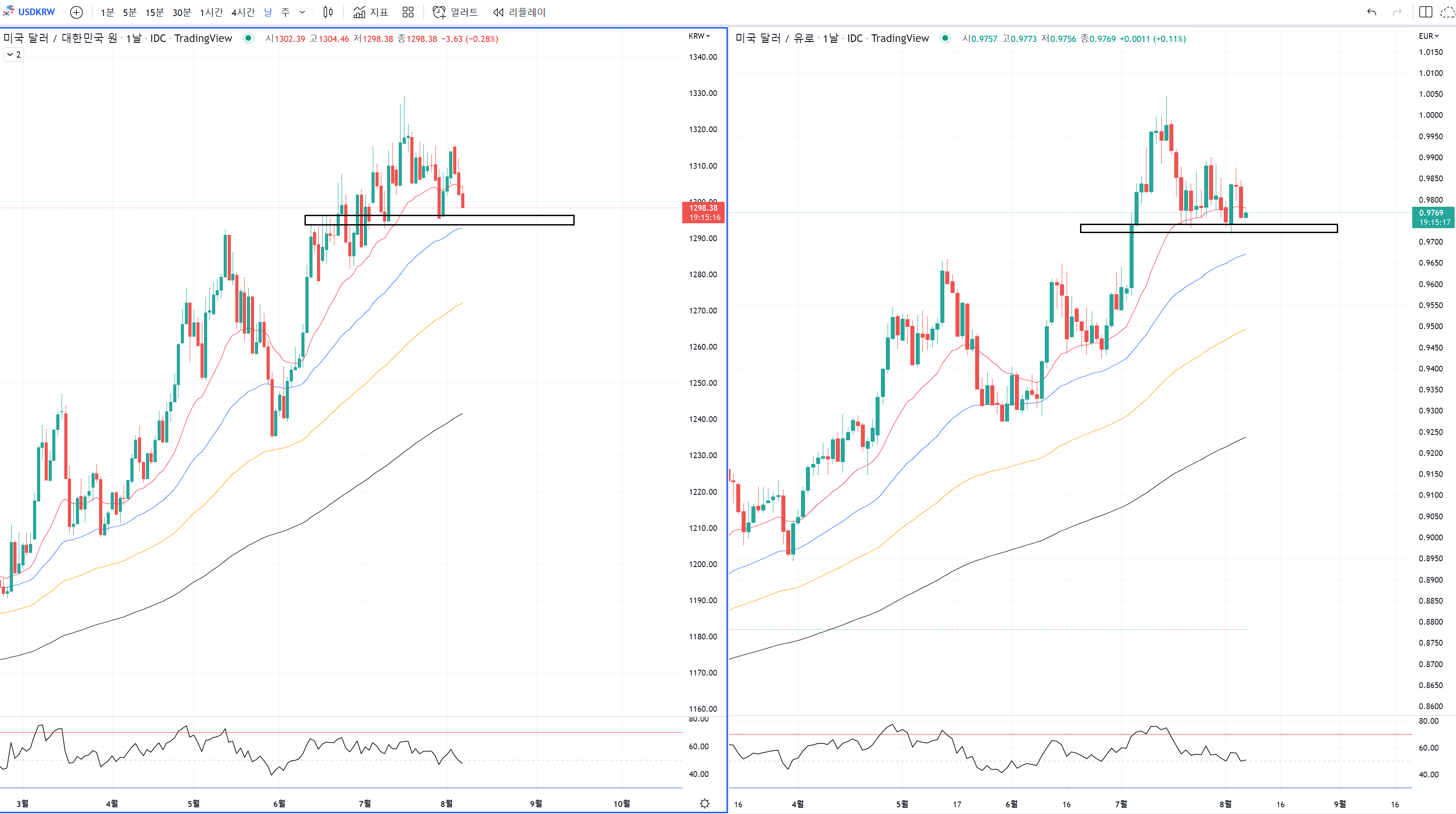 왼쪽은 원달라 차트이고, 오른쪽은 유로달라 차트입니다.