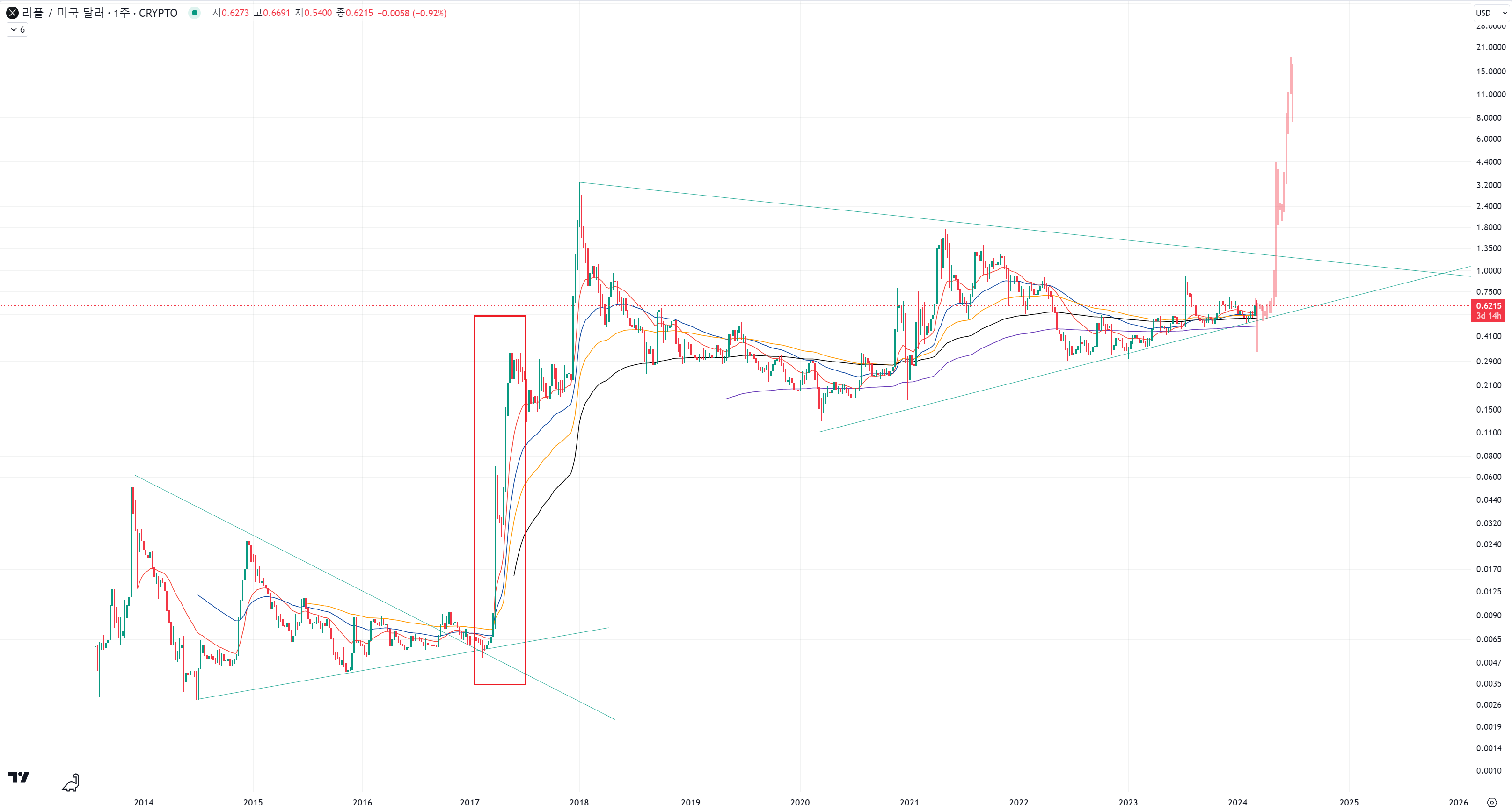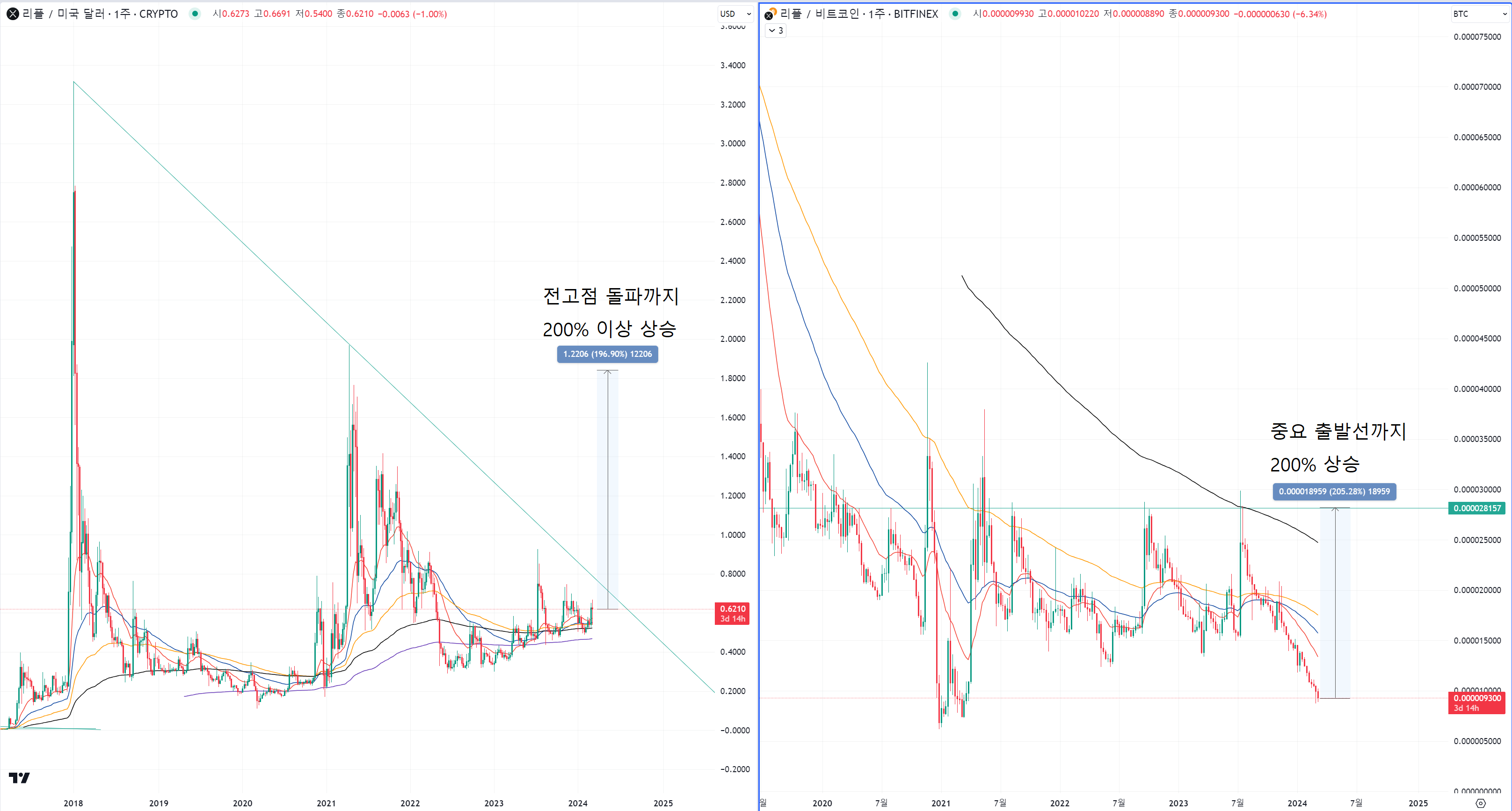 이 경우 리플이 장기적인 관점에서 아무리 차트가 좋아도 그냥 사놓고 기다리기에는 리스크가 너무 커요.