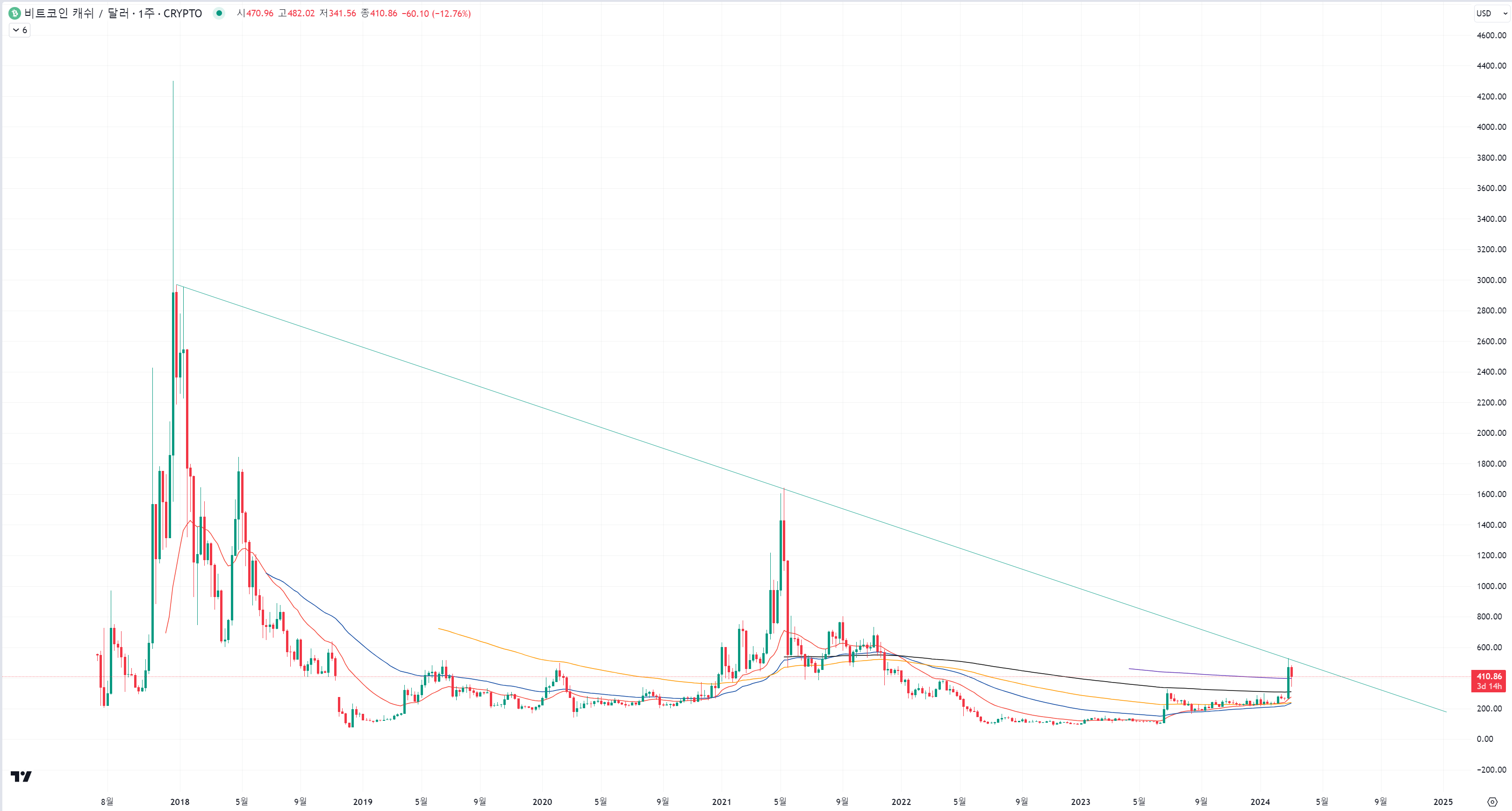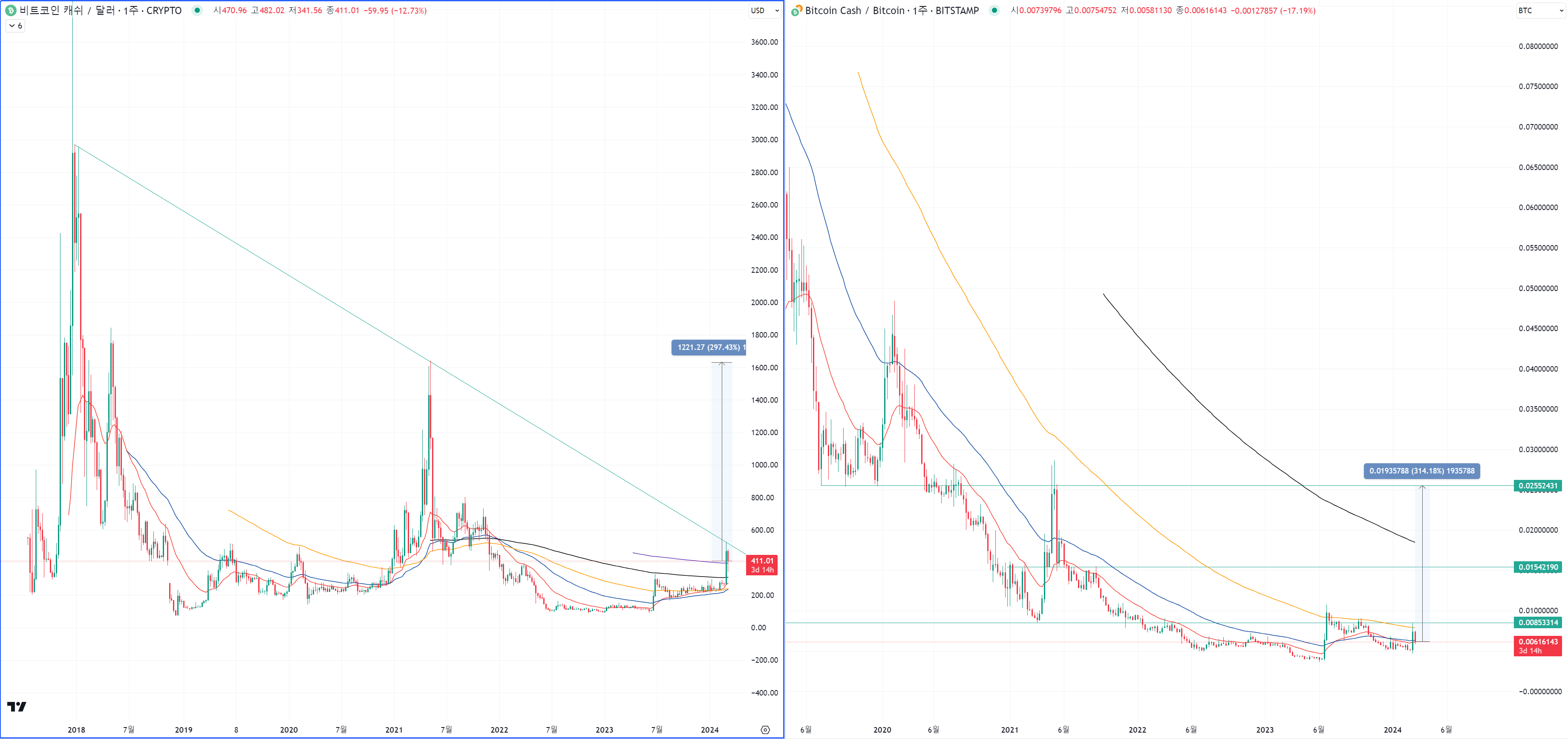 비캐의 경우에도 전고점까지의 상승세에있어 btc 차트는 중요 저항선에 걸리게 됩니다.