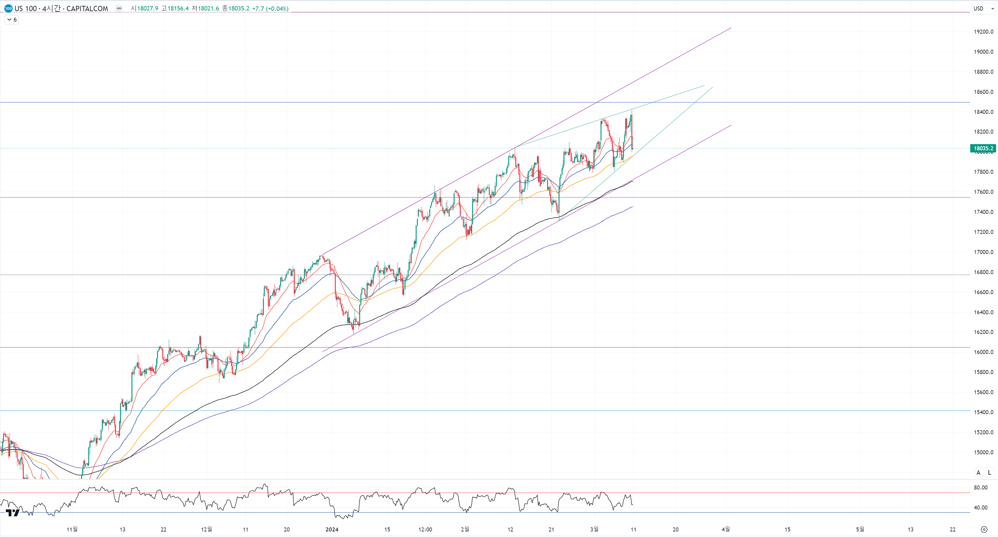 일단 나스닥부터 잠시 본다면 평행채널 안에서의 상승세에서