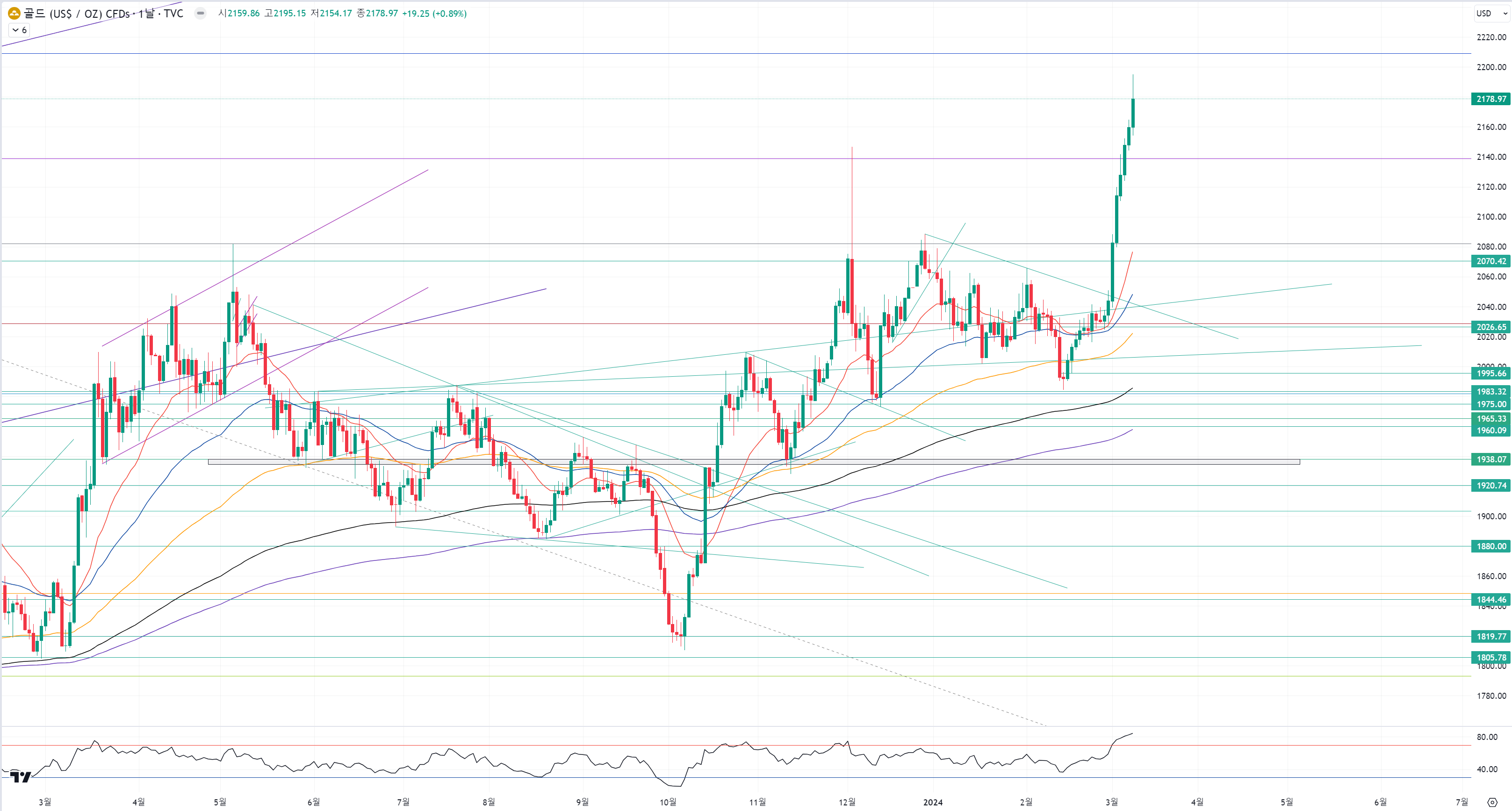 2023년 10월 기준 골드가 다시 상승 추세를 이어갈때