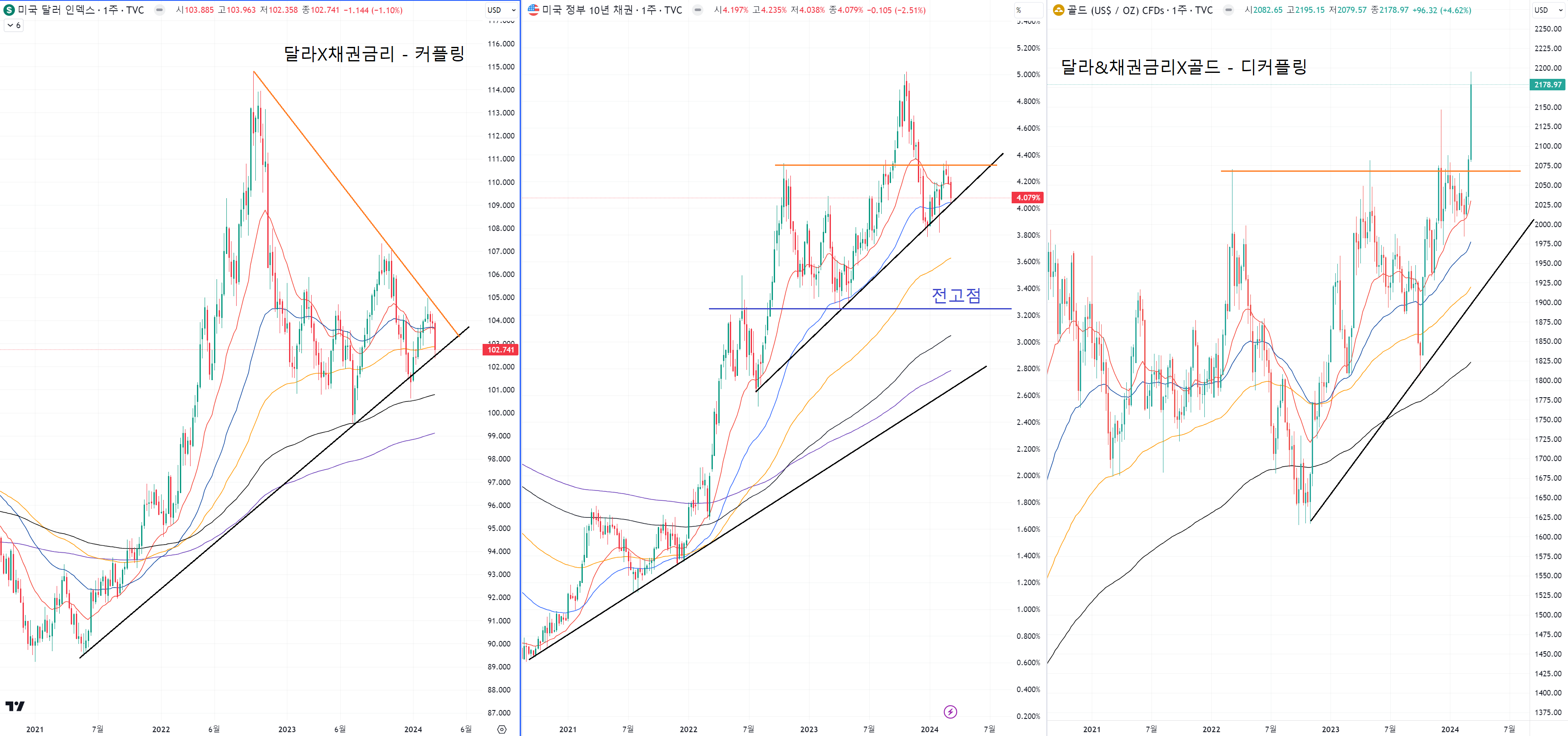 골드가 큰 상승을 할때 달라와 채권금리의 방어력이 높아진다.