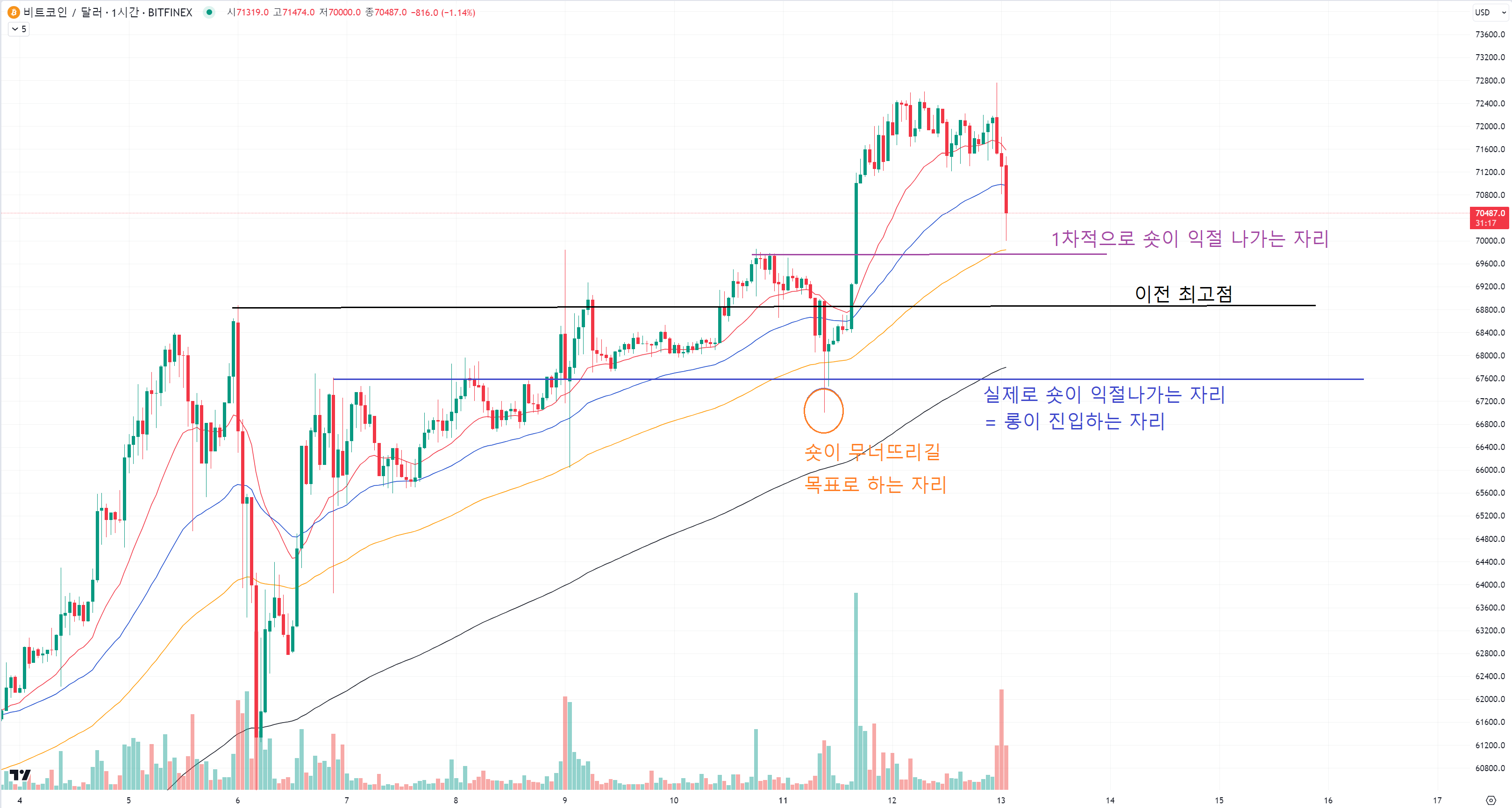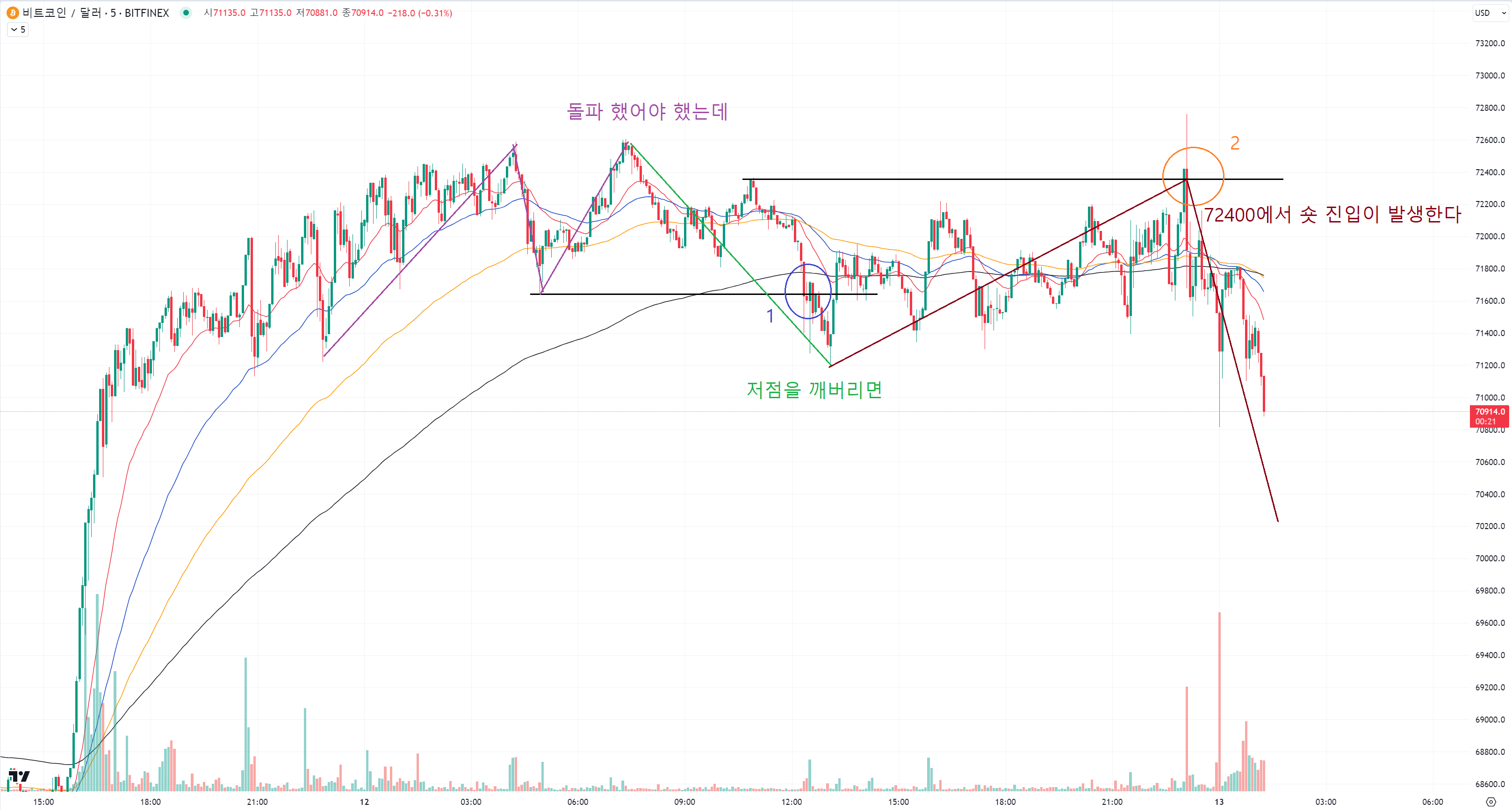 그리고 반등에서는 이제 72400같이 눈에 띄는 자리가 있으면 숏진입이 나오게 돼요.