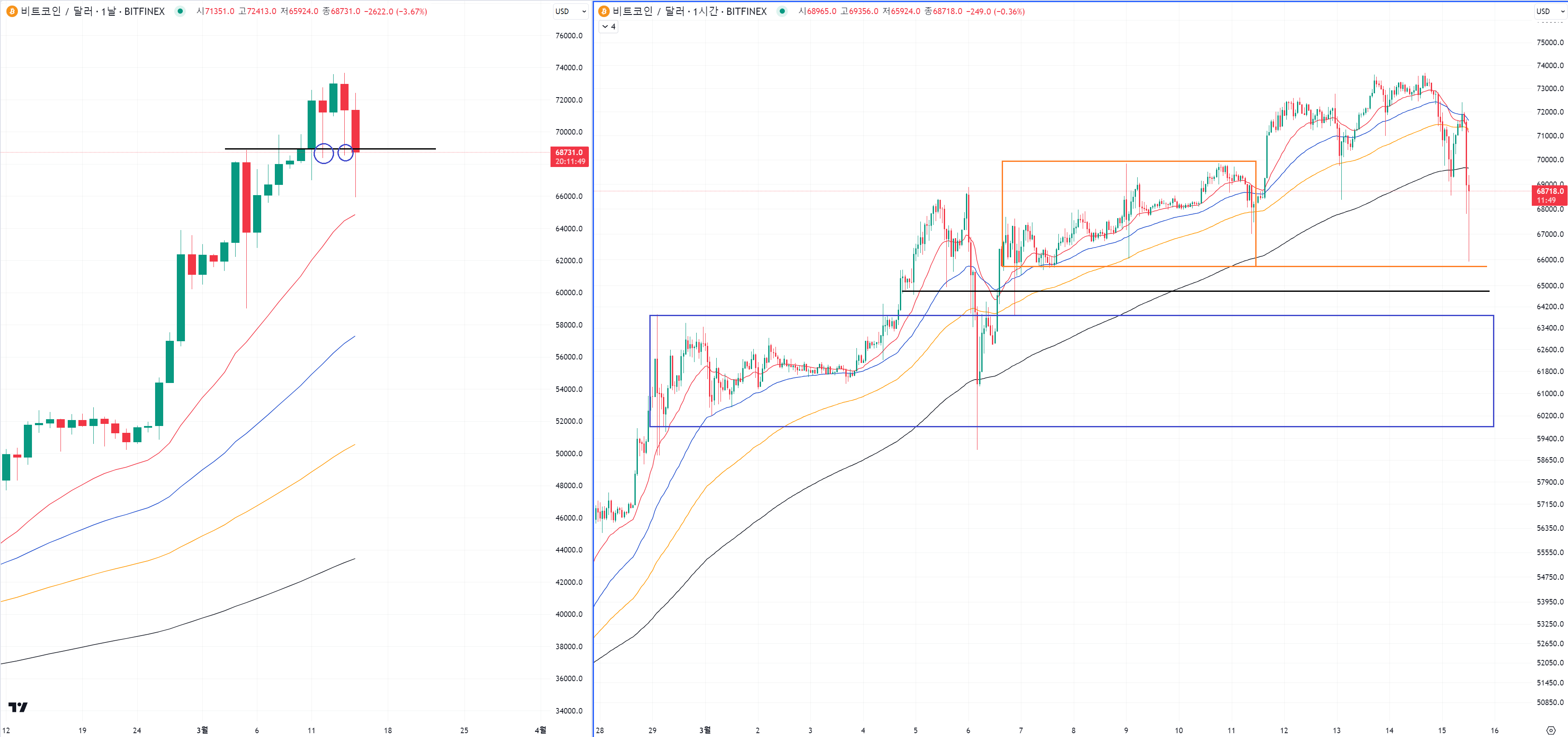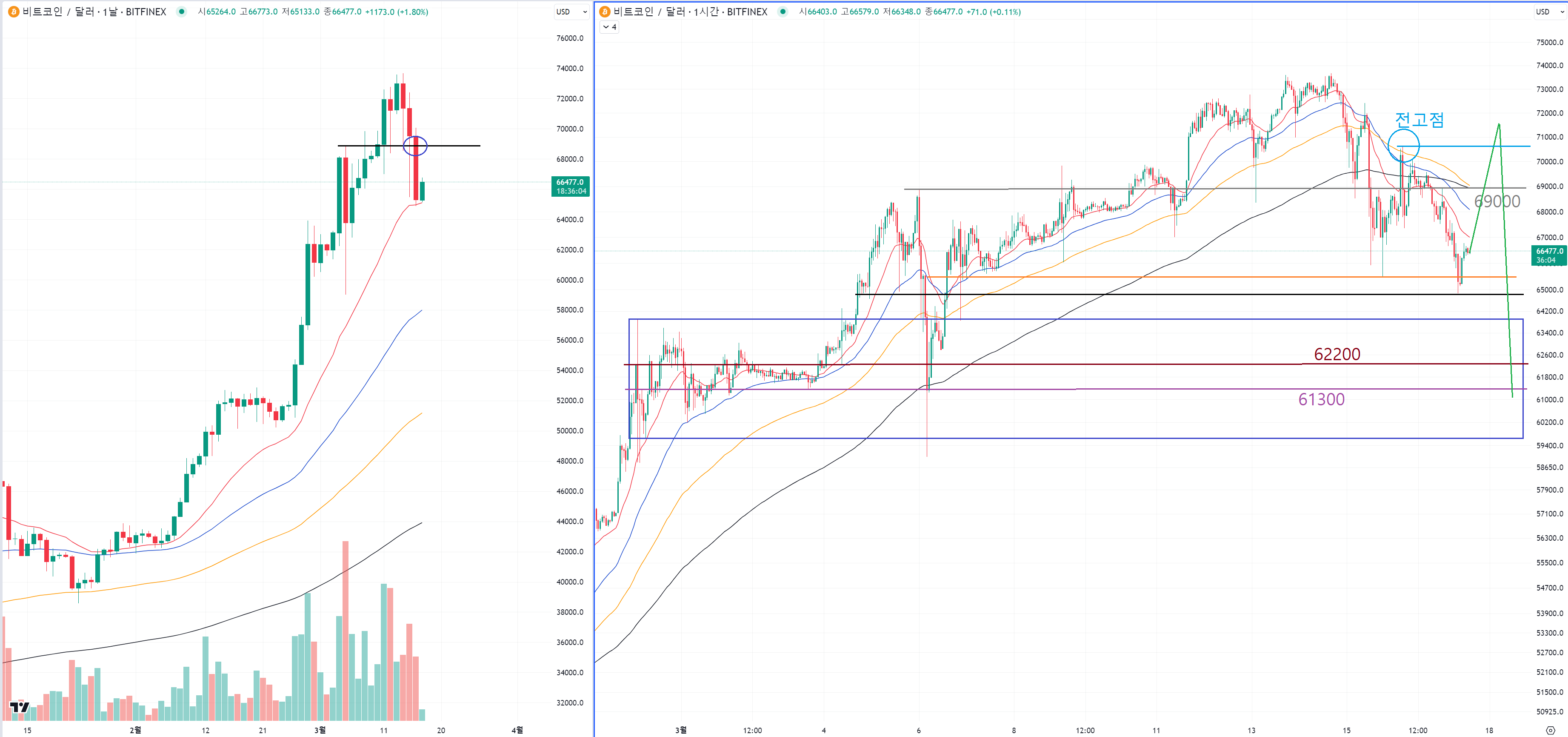 | 비트코인 중요 반등 지점. 비트코인의 이평선. (1) | 2024.03.20 |