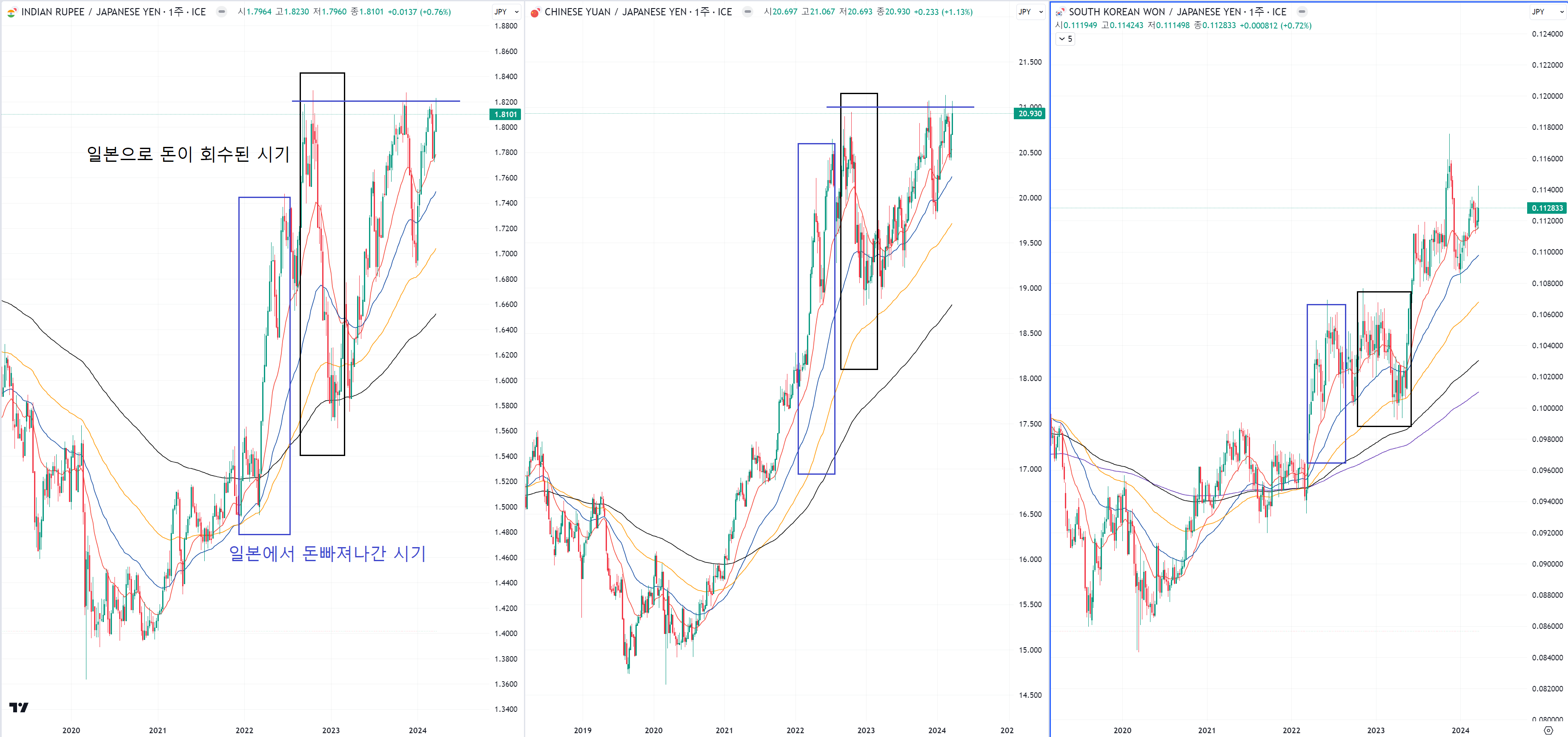 그리고 일본화폐차트는 루피엔화, 위안엔화 차트와 모습이 같은데 3번째 도전.