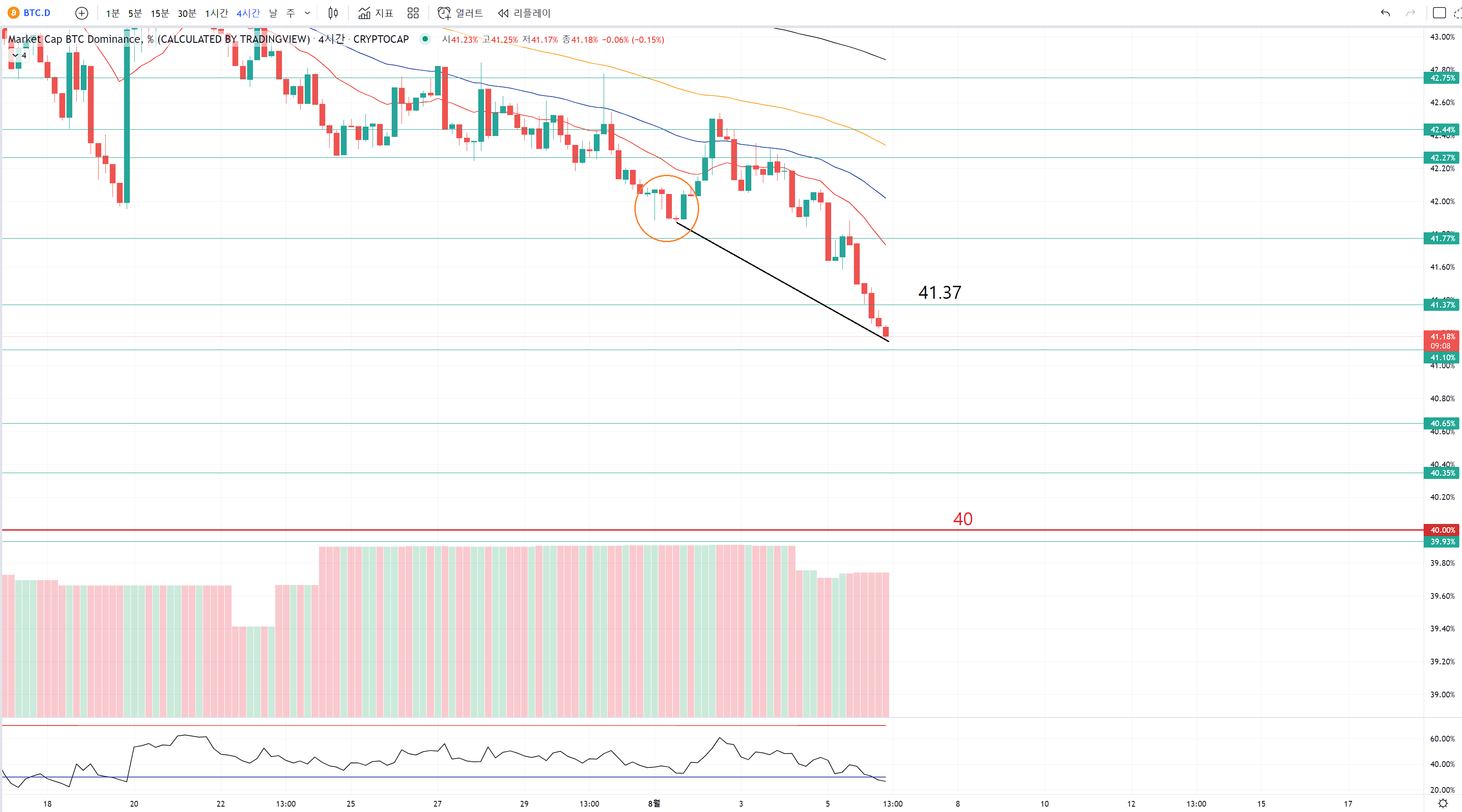수익을 최대한 끌어내더라도 도미넌스 40에서는 알트코인은 정리가 마무리 단계여야 하는데