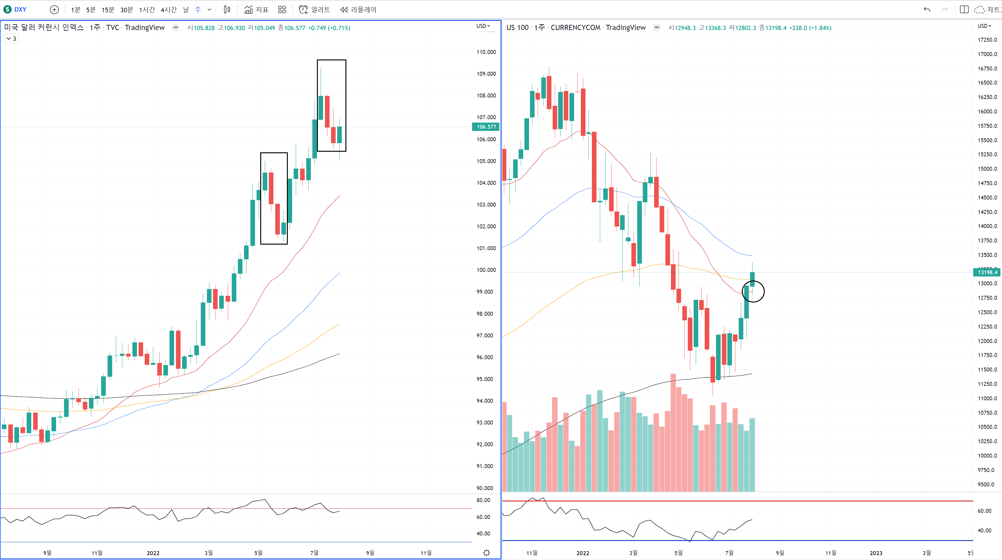 결국 달라 양봉에 나스닥도 양봉으로 마무리하며 거품낀 한 주가 됐습니다.
