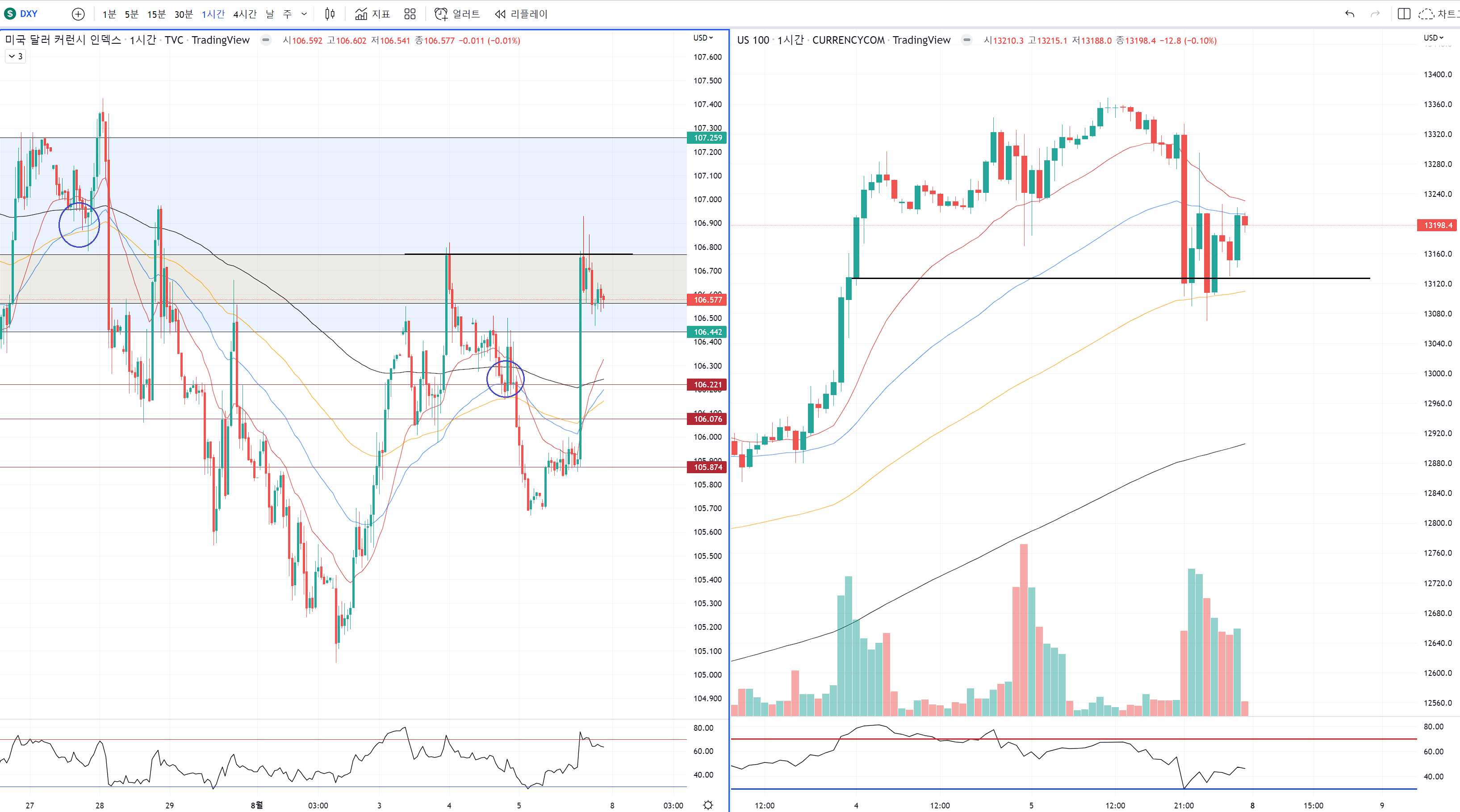 그 이유로는 달라의 8월 5일 하락에서 나스닥이 상승하지 않았기 때문이예요.