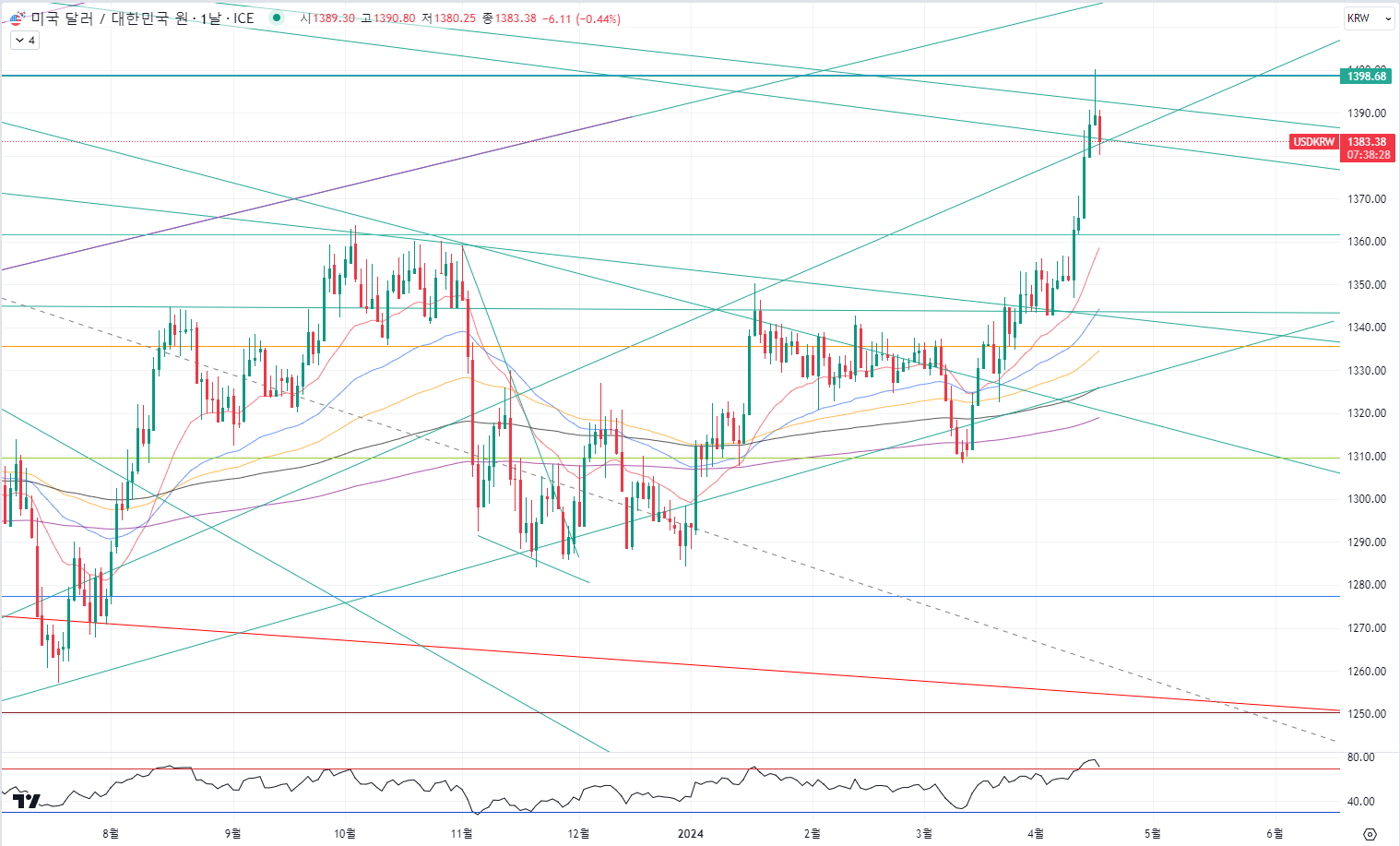 환율도 저항에 도달했어요.